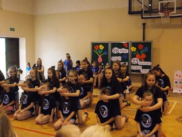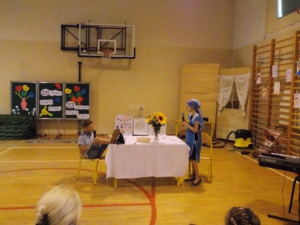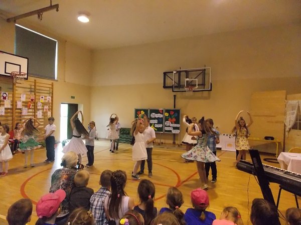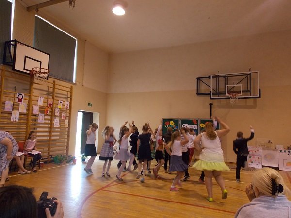 Uczniowie w dniu swojego święta przyjęli najlepsze życzenia i słodkie upominki od nauczycieli i rodziców. Następnie na sali gimnastycznej zgromadzili się licznie przybyli rodzice z przedstawicielem władz gminnych w osobie Pana Wójta, również rodzica. Dyrektor szkoły Pani Małgorzata Koroś powitała gości i złożyła wszystkim życzenia. Były wiersze dla mam i tatusiów, piękne piosenki i scenki „z życia wzięte”, tańce w wykonaniu uczniów klas młodszych i grupy tanecznej ze Studia tańca FEN prowadzonej przez panią Blankę Malinowską. Po części artystycznej dzieci wręczyły swoim bliskim przygotowane przez siebie prezenty. Uściskom i całusom nie było końca.