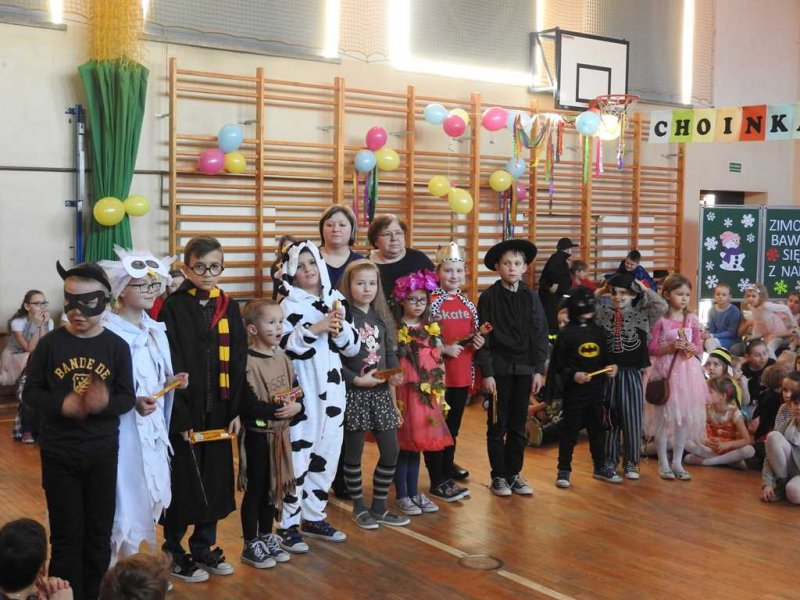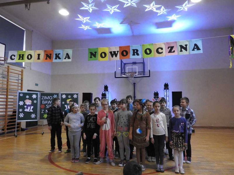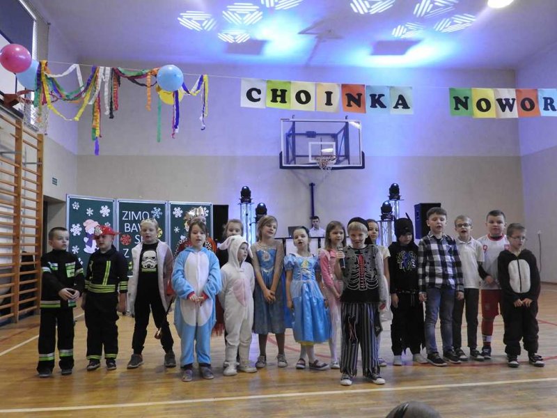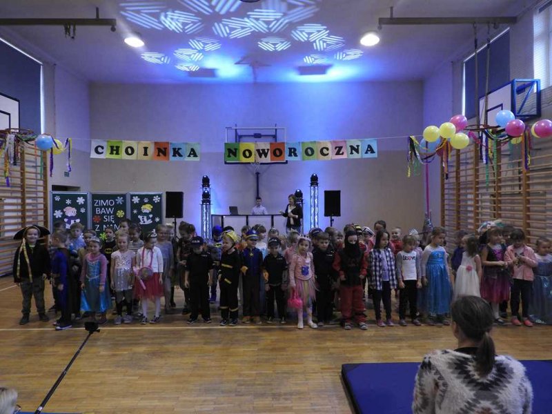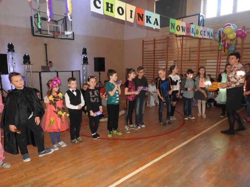 W tym roku choinka odbyła się 24 stycznia. Tym samym otwierała ona symbolicznie okres ferii zimowych. Pięknie udekorowana sala była sceną tańców, zabaw i swawoli uczestników tej lubianej i wyczekiwanej imprezy. W przerwach zabawy dzieci mogły posilić się przygotowanym przez Radę Rodziców poczęstunkiem. Na drugą część choinki przewidziano gwóźdź programu – konkurs na najciekawsze przebranie.