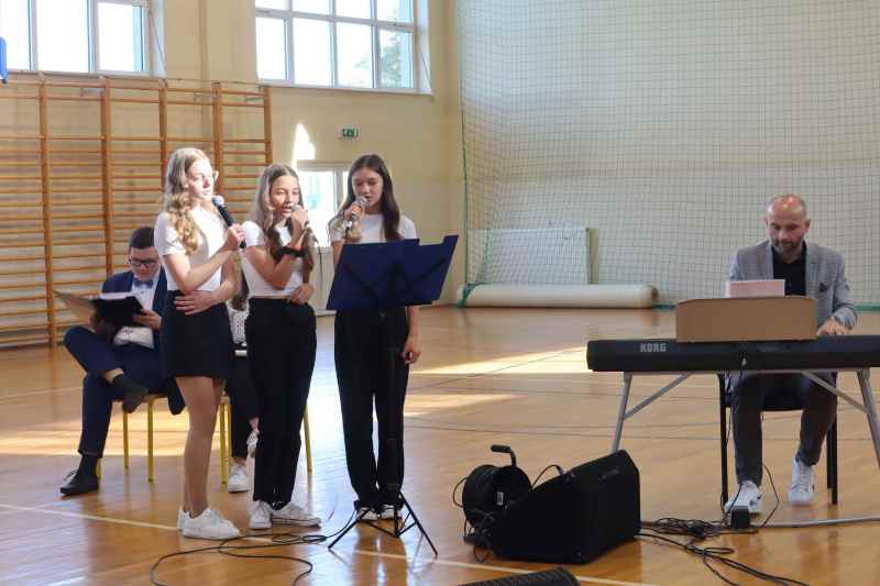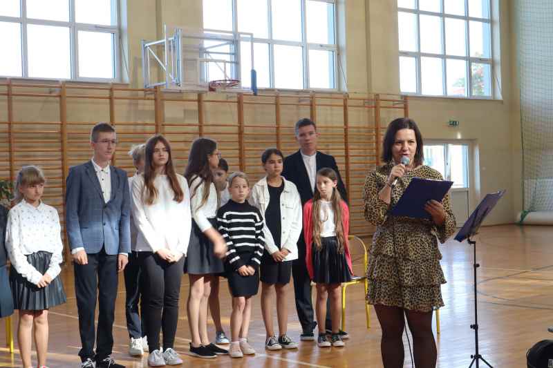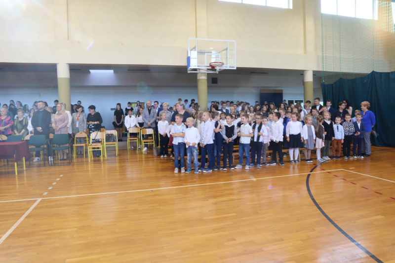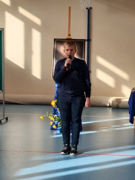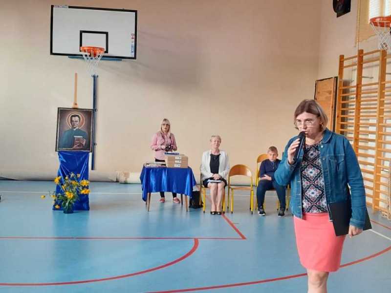 Klasy młodsze ten dzień uczciły 2 października. Spotkanie na sali gimnastycznej rozpoczęła p. dyr. Małgorzata Koroś, przedstawiając sylwetkę błogosławionego i jego charyzmat. Wspólnie zaśpiewaliśmy Barkę. W dalszej części uroczystości wsłuchaliśmy się w słowa ks. Piotra Pędzicha o miłości Bożej. Nie obyło się bez cukierków, wszak to urodziny patrona szkoły. Pieśń o błogosławionym Edwardzie zaśpiewał Karol Bocian.