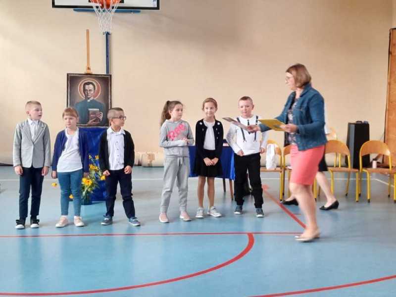 Wiele radości przyniosło zebranym rozstrzygnięcie konkursu plastycznego „Ziemia księdza Edwarda”. Zwyięzcy i wyróżnieni zostali nagrodzeni atrakcyjnymi nagrodami, rozwijającymi ich talenty plastyczne. Spotkanie zakończyła piosenka „Miłość Twa” w wykonaniu uczniów klasy IIa. Myślę, że te dni pozostaną miłym wspomnieniem dla naszej społeczności.
