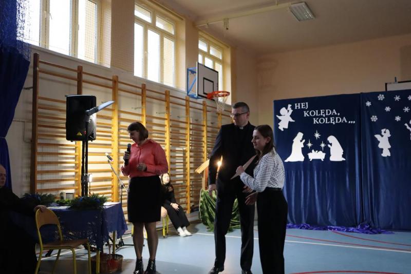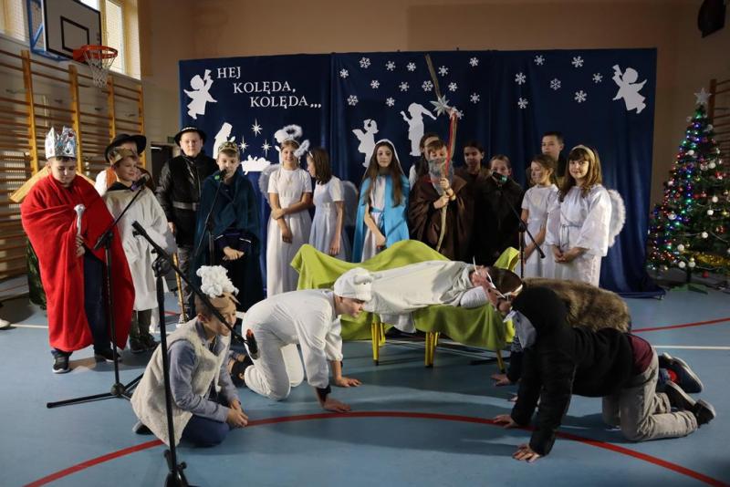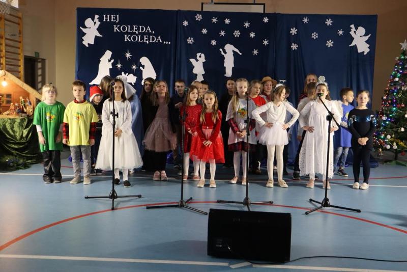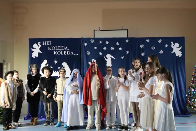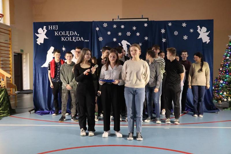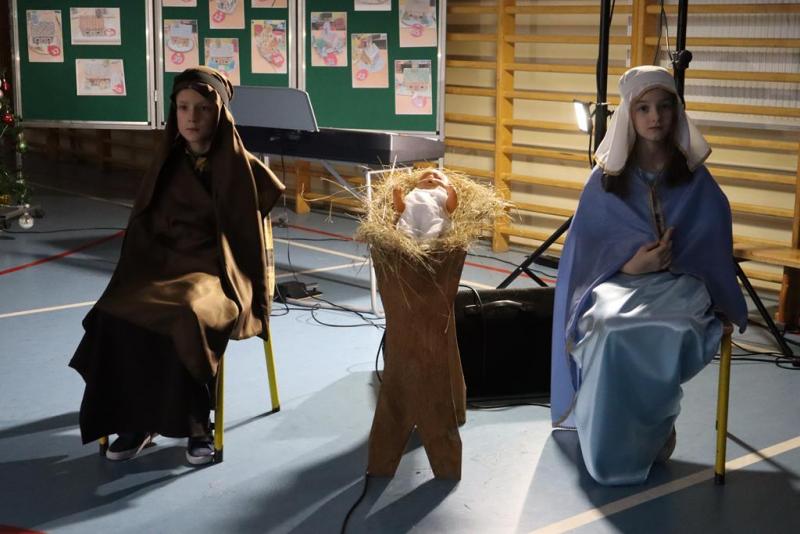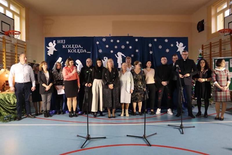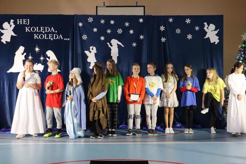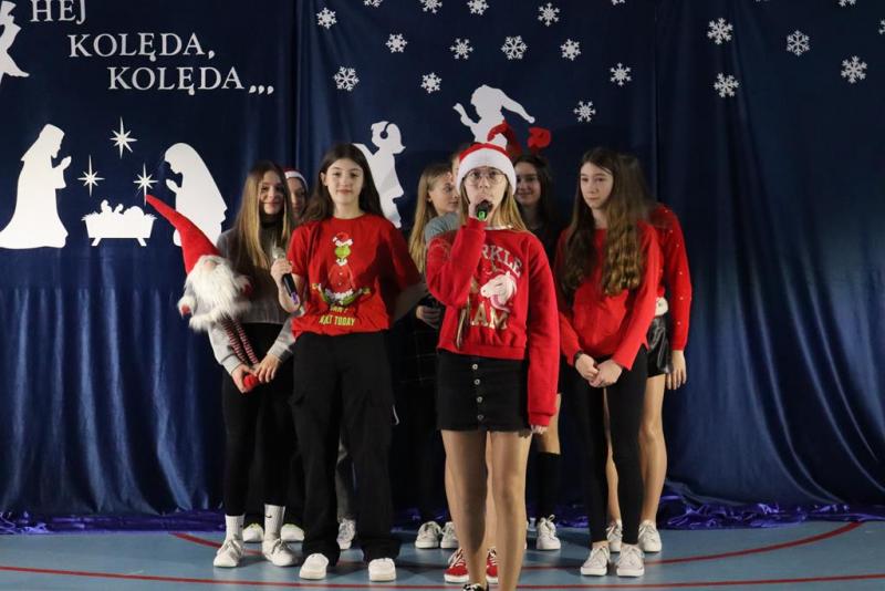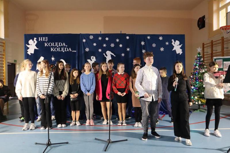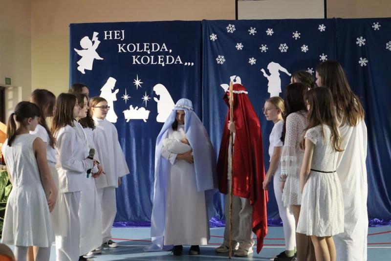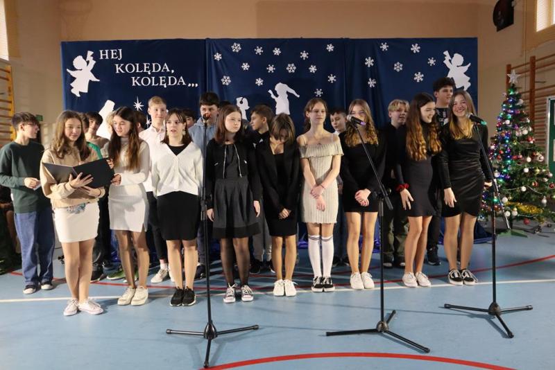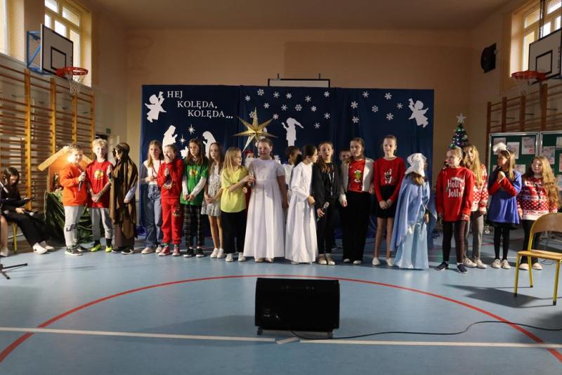 W środę, 20 grudnia 2023r. spotkaliśmy się w naszej szkolnej wspólnocie, by posłuchać, ale też włączyć się we wspólne śpiewanie kolęd i pastorałek. Każda klasa ze swoim wychowawcą przygotowała kolędę, którą nam pięknie zaprezentowała. Śpiew kolęd pomógł nam przenieść się myślami do Betlejem i wspólnie przeżyć to wydarzenie sprzed ponad dwóch tysięcy lat.