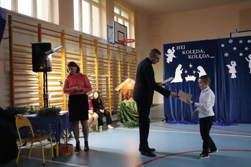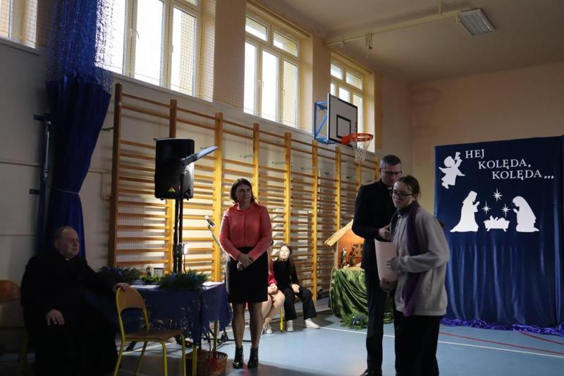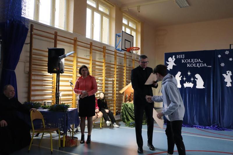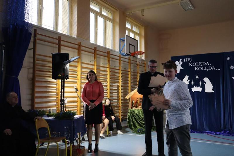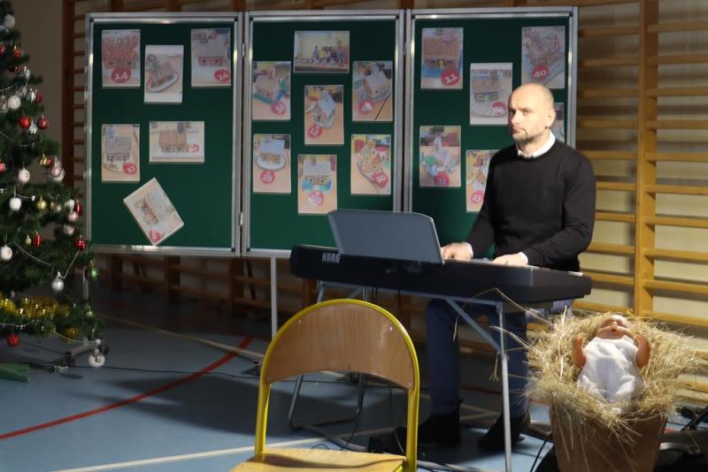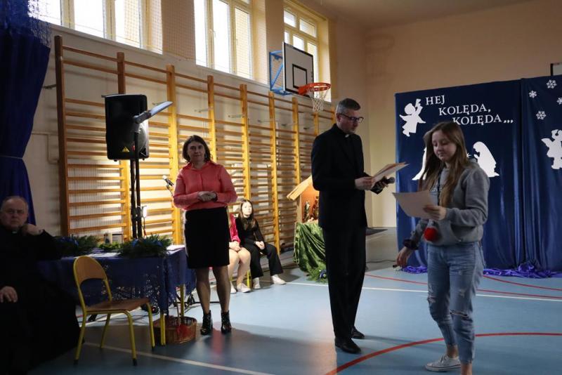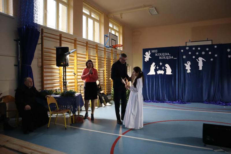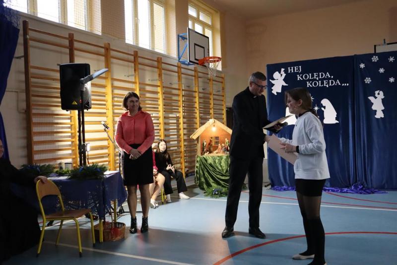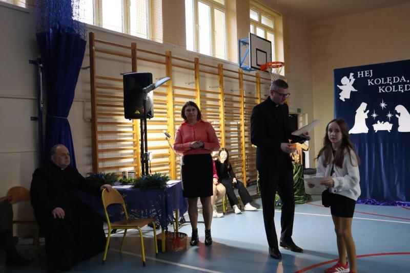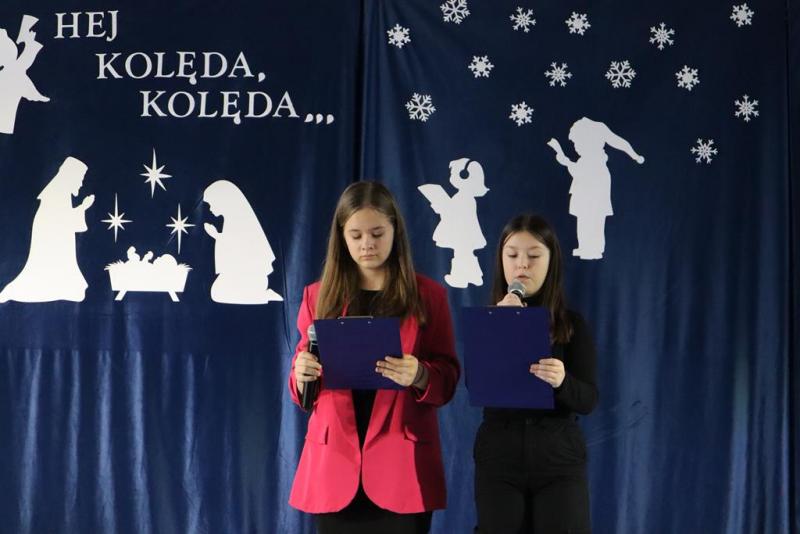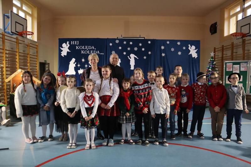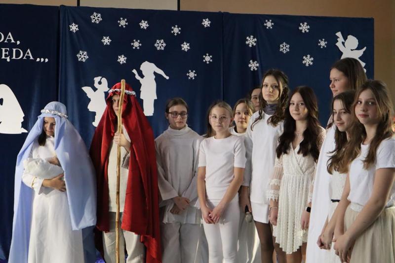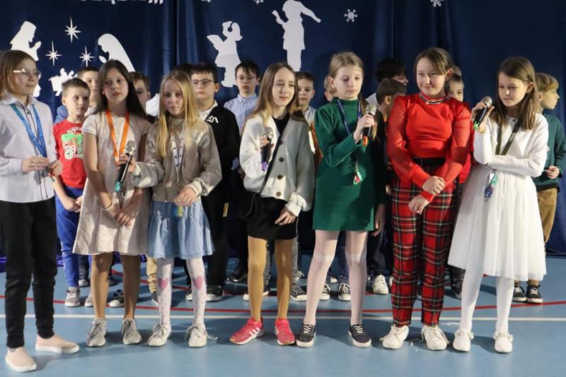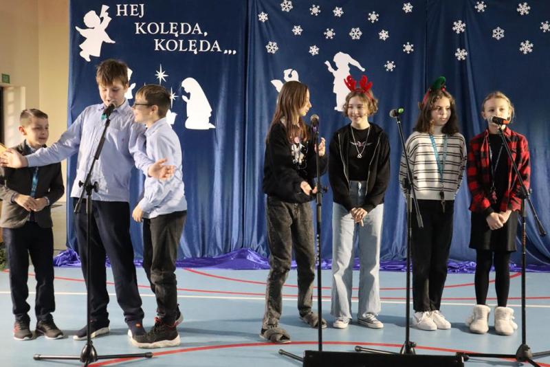 W środę, 20 grudnia 2023r. spotkaliśmy się w naszej szkolnej wspólnocie, by posłuchać, ale też włączyć się we wspólne śpiewanie kolęd i pastorałek. Każda klasa ze swoim wychowawcą przygotowała kolędę, którą nam pięknie zaprezentowała. Śpiew kolęd pomógł nam przenieść się myślami do Betlejem i wspólnie przeżyć to wydarzenie sprzed ponad dwóch tysięcy lat.