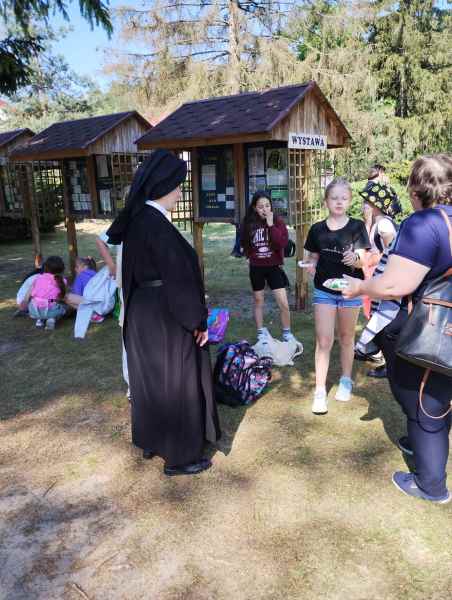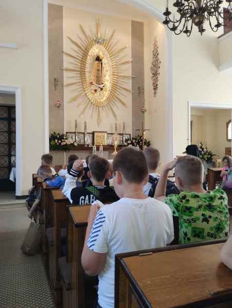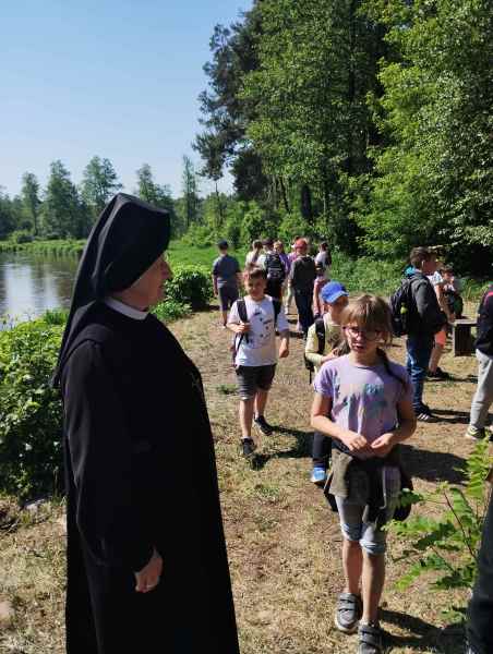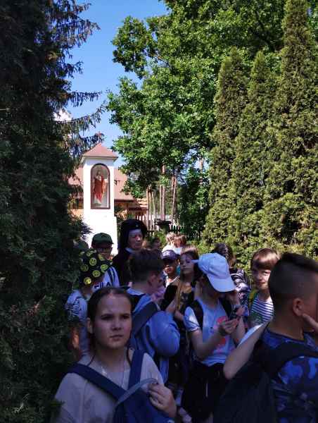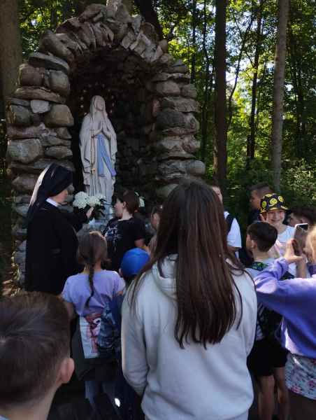 z życia bł. ks. Ignacego Kłopotowskiego. Siostra pokazała nam kilka ciekawych miejsc, między innymi odbyliśmy spacer nad rzekę Liwiec i zwiedziliśmy Muzeum Dzwonków. Następnie wzięliśmy udział w uczcie duchowej, czyli we Mszy Świętej odprawionej przez ks. Krzysztofa. Potem udaliśmy się na Leśną Drogę Krzyżową i rozważaliśmy mękę Pana Jezusa. W dalszej części odbyło się ognisko z pieczeniem kiełbasek, a więc było też coś dla ciała. Zakupiliśmy również wiele pamiątek związanych z tym sanktuarium. Resztę czasu spędziliśmy na placu zabaw, potem ochłodziliśmy się lodami i wróciliśmy bardzo zadowoleni i duchowo wzmocnieni do naszych domów.