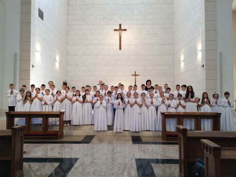 We wtorek, 21 maja 2024r. dzieci klas III, które 18 maja przyjęły I Komunię Świętą udały się w ramach Białego Tygodnia na pielgrzymkę autokarową do Loretto. Dzieciom towarzyszyły panie wychowawczynie, katechetki i ks. Krzysztof Rzepczyński, który pomagał im w dobrym przygotowaniu się do spotkania z Jezusem w sakramencie pokuty i Eucharystii. Głównym celem tego wyjazdu było podziękować Jezusowi i Jego Matce Maryi za cały rok przygotowań. Najpierw siostra Loretanka opowiedziała nam historię Loretta i wiele faktów