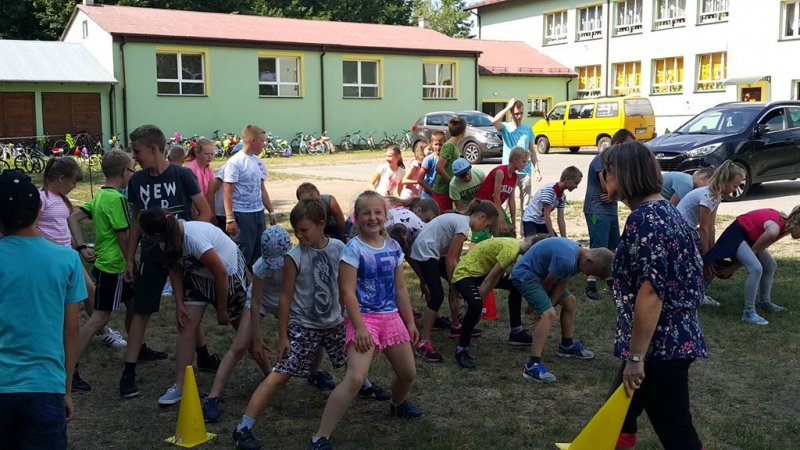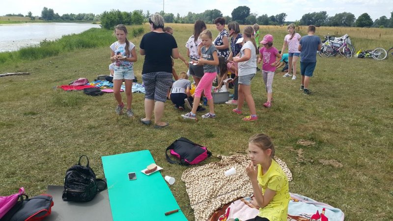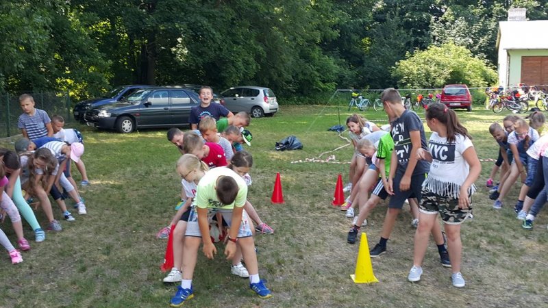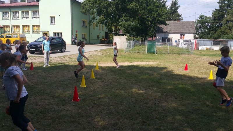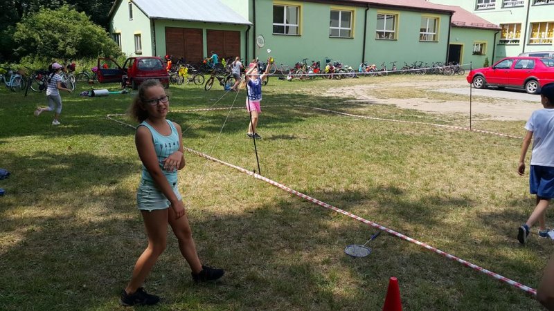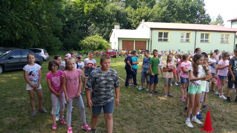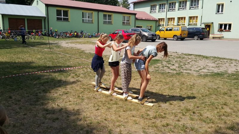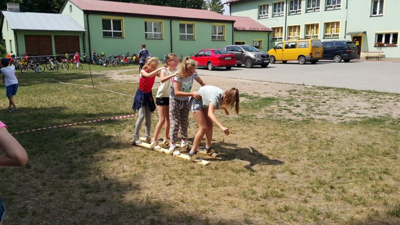 W dniu 19.06.2018r. uczniowie klas IV udali się na wycieczkę rowerową do Zespołu Szkolno-Przedszkolnego w Grabinach. W ramach zajęć integrujących czwartoklasiści obu szkół zostali podzieleni na 5 dwunastoosobowych drużyn, które wzięły udział w zawodach sportowo-rekreacyjnych. Uczniowie rywalizowali w 4 konkurencjach zręcznościowych, w 2 rozgrywkach: w piłkę nożną i badmintona. Poza tym każda drużyna miała za zadanie utworzyć zdanie z pierwszych liter wyrazu.