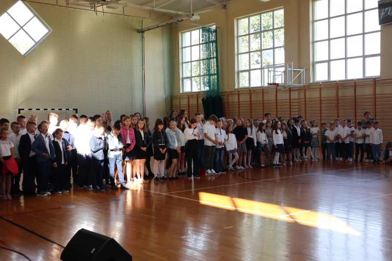 Inauguracja roku szkolnego 2022/2023 rozpoczęła się Mszą Świętą w Kościele Parafialnym w Sadownem, w której wraz z pocztem sztandarowym naszej szkoły uczestniczyli pracownicy, rodzice wraz z dziećmi. Po zakończeniu Mszy Św. uczniowie przeszli do gminnej hali sportowej, gdzie oficjalnie wprowadzono sztandar szkoły i wspólnie odśpiewano hymn. Minutą ciszy upamiętniono 83 rocznicę wybuchu II wojny światowej, a delegacja harcerska złożyła kwiaty pod Pomnikiem poległych i pomordowanych patriotów sadowieńskich. Następnie Pani dyrektor Małgorzata Koroś powitała zebranych gości: Wójta Gminy Sadowne – Pana Waldemara Cyrana, rodziców, nauczycieli, pracowników administracji i obsługi, uczniów, a w szczególności tych, którzy dopiero rozpoczynają naukę w naszej szkole. Omówiła także organizację bieżącego roku szkolnego i formy pomocy socjalnej dla uczniów (obiady finansowane przez GOPS, stypendium szkolne). U progu nowego roku szkolnego złożyła życzenia nauczycielom, uczniom i rodzicom. W dalszej części głos zabrał także Wójt Gminy Sadowne życząc wszystkim zebranym zapału w zdobywaniu wiedzy i umiejętności oraz wielu sukcesów w bieżącym roku szkolnym. Na zakończenie Wójt Gminy wraz z Dyrektorem szkoły dokonali uroczystego rozpoczęcia nowego roku szkolnego i uczniowie udali się do sal lekcyjnych na spotkanie z wychowawcami klas.