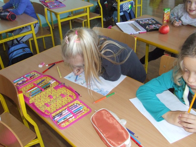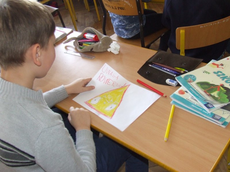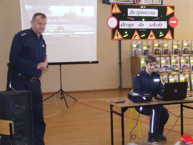 Dla uczniów klas I-III policjanci z Komendy Powiatowej Policji w Węgrowie przeprowadzili zajęcia profilaktyczno-edukacyjne mające na celu propagowanie bezpiecznych zachowań na drodze. Po obejrzeniu filmu „…tak, chcę być bezpieczny” uczniowie wzięli udział w konkursie plastycznym nt. bezpieczeństwa w ruchu drogowym.