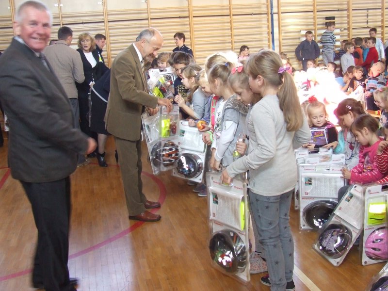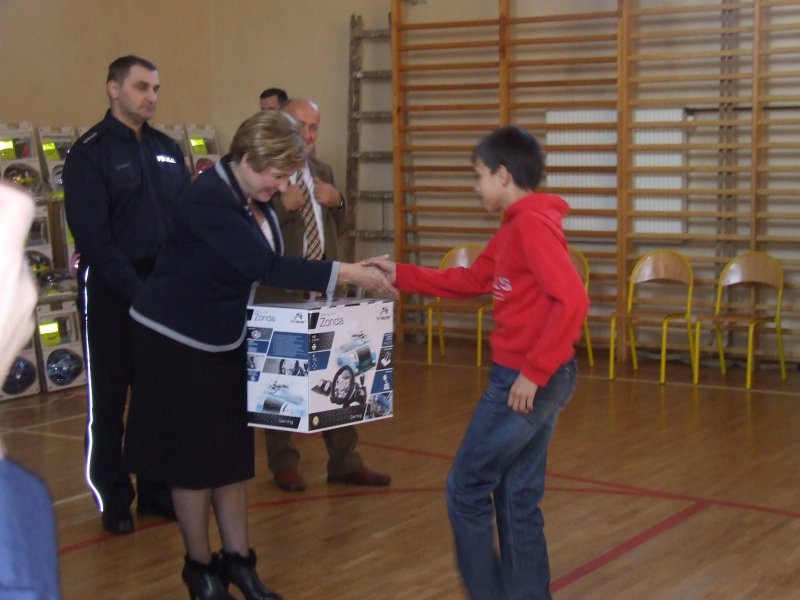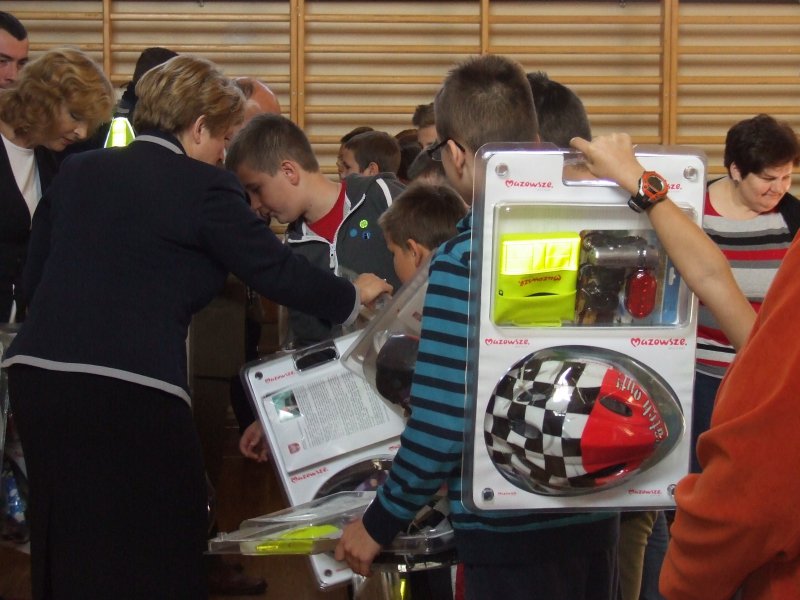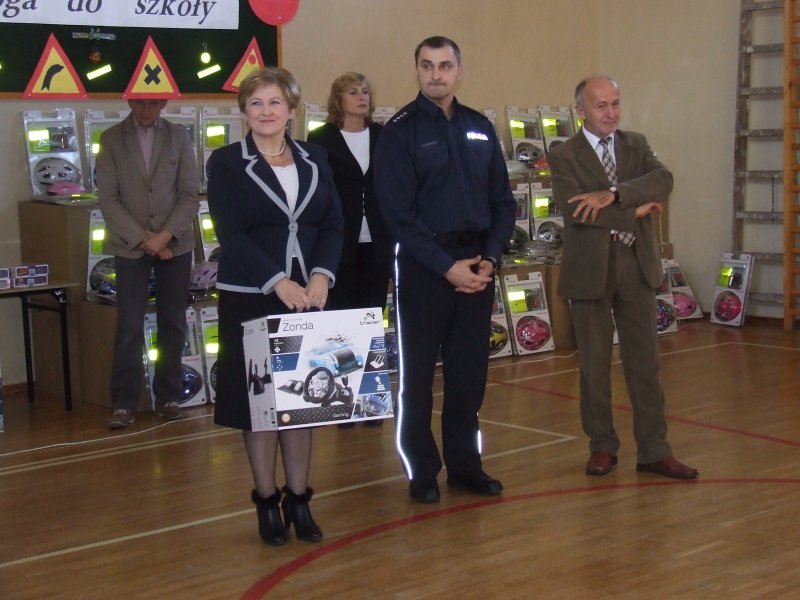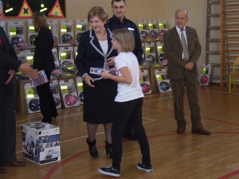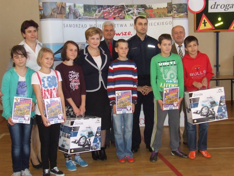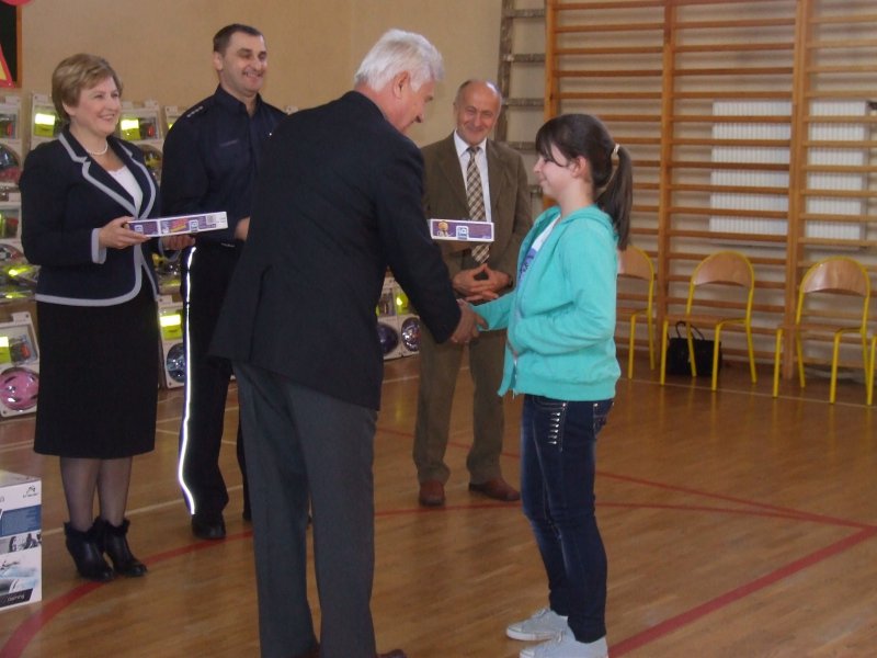 Wszyscy uczestniczący w imprezie uczniowie otrzymali zestawy rowerzysty zawierające: kask rowerowy, pas naramienny, oświetlenie do roweru, elementy odblaskowe, natomiast zwycięzcy konkursów nagrody dodatkowe, które wręczyli: członek Zarządu Województwa Mazowieckiego Elżbieta Lanc, dyrektor Wojewódzkiego Ośrodka Ruchu Drogowego w Siedlcach Jacek Kobyliński, wójt gminy Sadowne Zdzisław Tracz i komendant Powiatowy Policji w Węgrowie nadkom. Mirosław Olszewski.