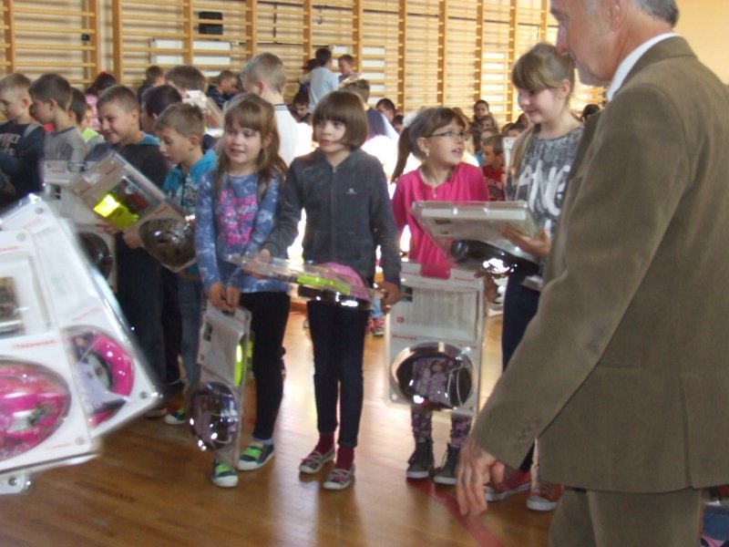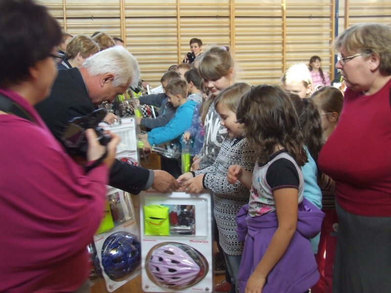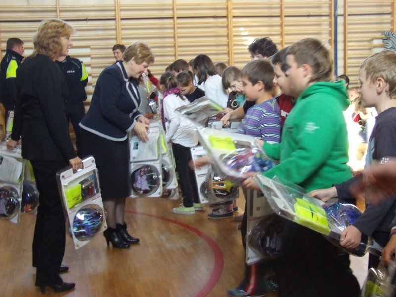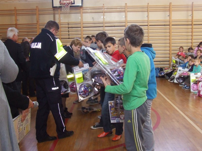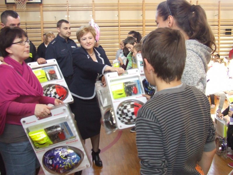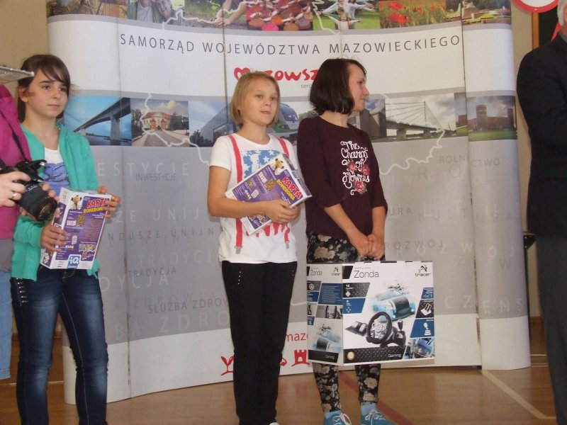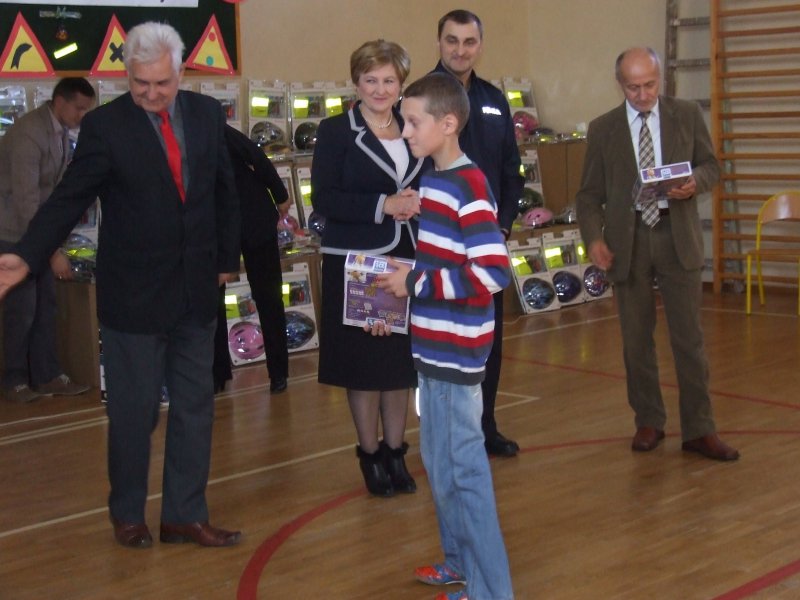 Wszyscy uczestniczący w imprezie uczniowie otrzymali zestawy rowerzysty zawierające: kask rowerowy, pas naramienny, oświetlenie do roweru, elementy odblaskowe, natomiast zwycięzcy konkursów nagrody dodatkowe, które wręczyli: członek Zarządu Województwa Mazowieckiego Elżbieta Lanc, dyrektor Wojewódzkiego Ośrodka Ruchu Drogowego w Siedlcach Jacek Kobyliński, wójt gminy Sadowne Zdzisław Tracz i komendant Powiatowy Policji w Węgrowie nadkom. Mirosław Olszewski.