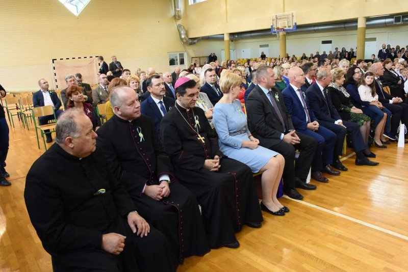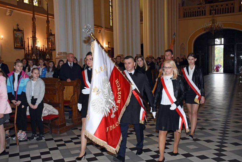 Sprawował ją ks. dr Piotr Sawczuk Biskup Diecezji Drohiczyńskiej. Koncelebrował ks. kan. dr Marek Matusik absolwent naszej szkoły i współautor biografii i poszerzonego modlitewnika „Chcę zdobyć całe Niebo. Błogosławiony ks. Edward Grzymała”. Przed rozpoczęciem mszy nastąpiło powitanie ks. biskupa (przez uczniów i p. dyrektor) oraz poświęcenie sztandaru szkoły, który w tym momencie spoczywał w rękach Pocztu Sztandarowego Rodziców (p. Dorota Ojdana, p. Katarzyna Popławska i p. Mariusz Opieka