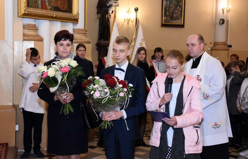 O 9.30 rozpoczęła się Msza św.- odprawiona w intencji uczniów, nauczycieli i rodziców oraz wszystkich przybyłych gości- w naszym parafialnym kościele, w którym równo 113 lat temu (30.09.1906r.) ochrzczony został (urodzony dzień wcześniej) bł. ks. Edward Grzymała.