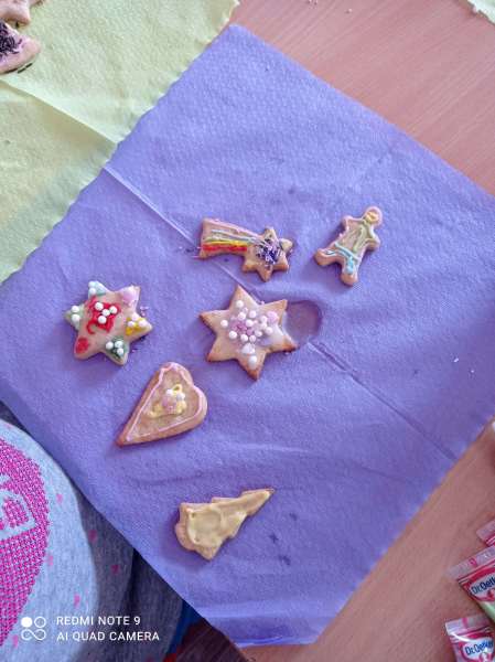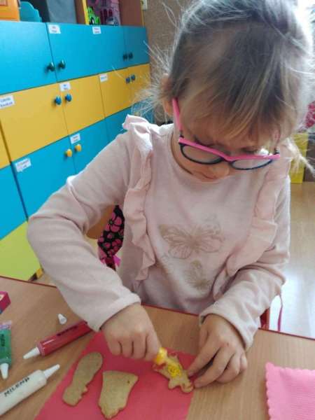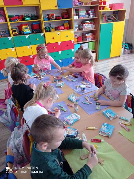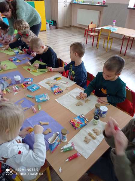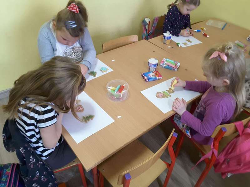 Dnia 4 grudnia odbyły się w naszym przedszkolu warsztaty z ozdabiania pierników, które zostały wcześniej wykonane przez Panie z kuchni. Dzieci najpierw dowiedziały jakich składników i przypraw używa się do produkcji ciasta. Z wielkim zaangażowaniem maluchy ozdabiały swoje ciasteczka lukrem, a także barwnymi posypkami i pisakami. Każdy pierniczek był wyjątkowy i bardzo kolorowy. Po skosztowaniu wypieków, część nich została spakowana i każde dziecko zabrało swoje słodkości do domu.