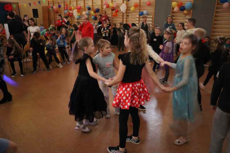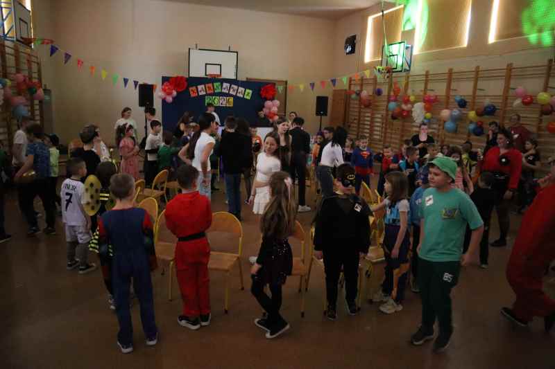 Wśród pszczółek, wiedźm, ratowników i tęczowych jednorożców, przy skocznej muzyce, wśród śmiechu i gwaru odbywały się konkursy, zabawy i tańce, którym przewodziła nasza najstarsza młodzież. Jak to na balach zwykle bywa, nie mogło się obejść bez wyboru królowej i króla balu. Dziękujemy za wspólną zabawę i niezapomniane wrażenia.