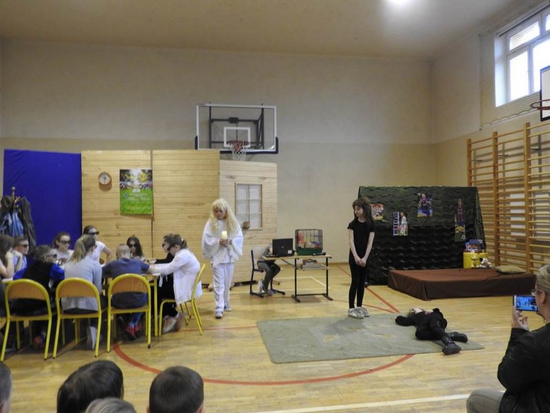Młodzież z klasy VA przygotowała spektakl profilaktyczny pt. „Niewidzialni”, który poruszał tematy uzależnień. Ogłoszono również wyniki Gminnego Konkursu Profilaktycznego pt. „Żyję wolny od nałogów”.