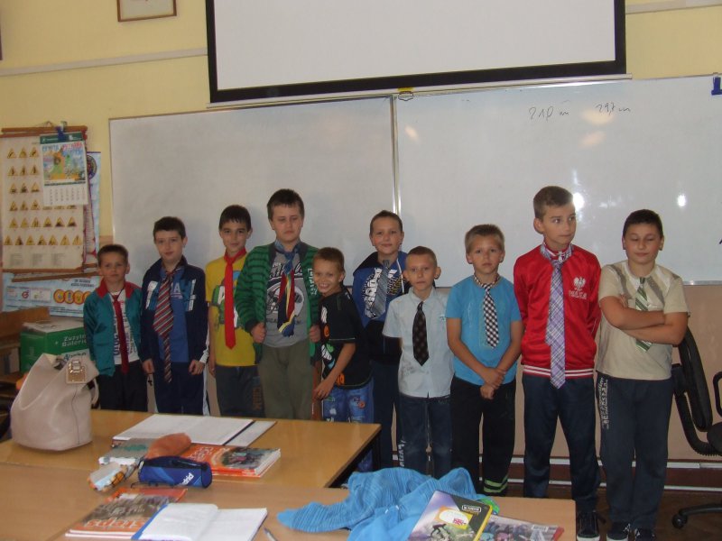 „ze ślubu”, od dziadka „od święta”, od starszego brata „ze studniówki”. Niektórzy chłopcy założyli własne krawaty. Najciekawsze jednak były te zrobione i ozdobione (bardzo ciekawie) samodzielnie.