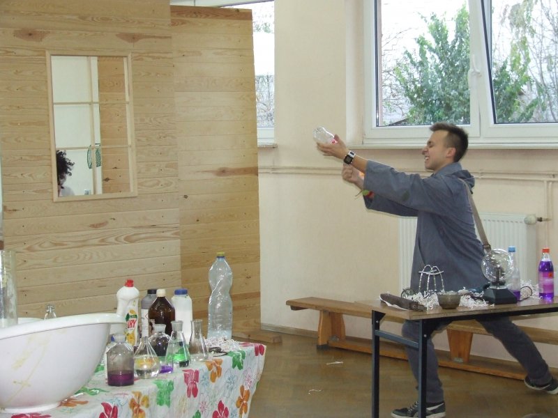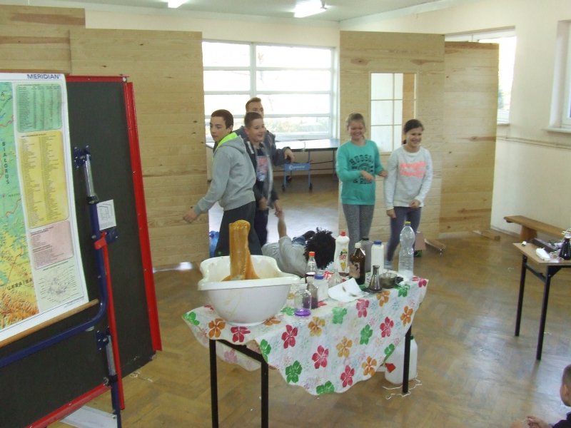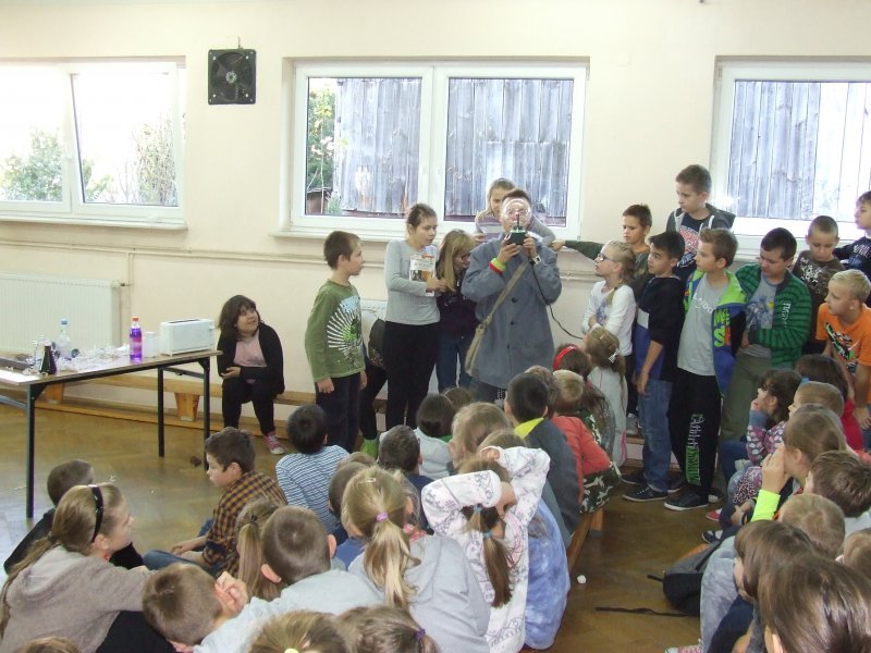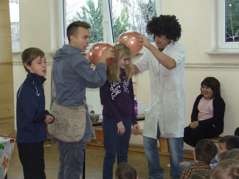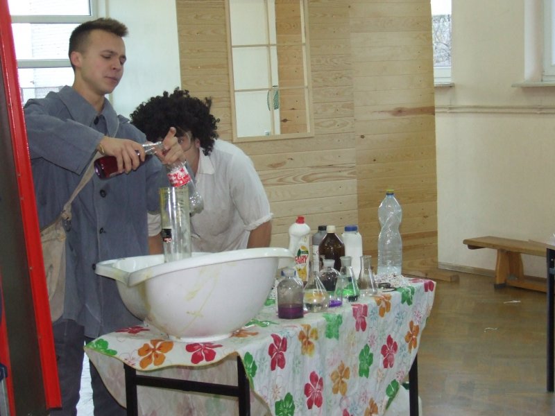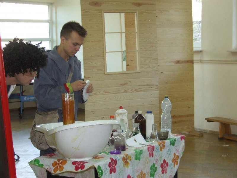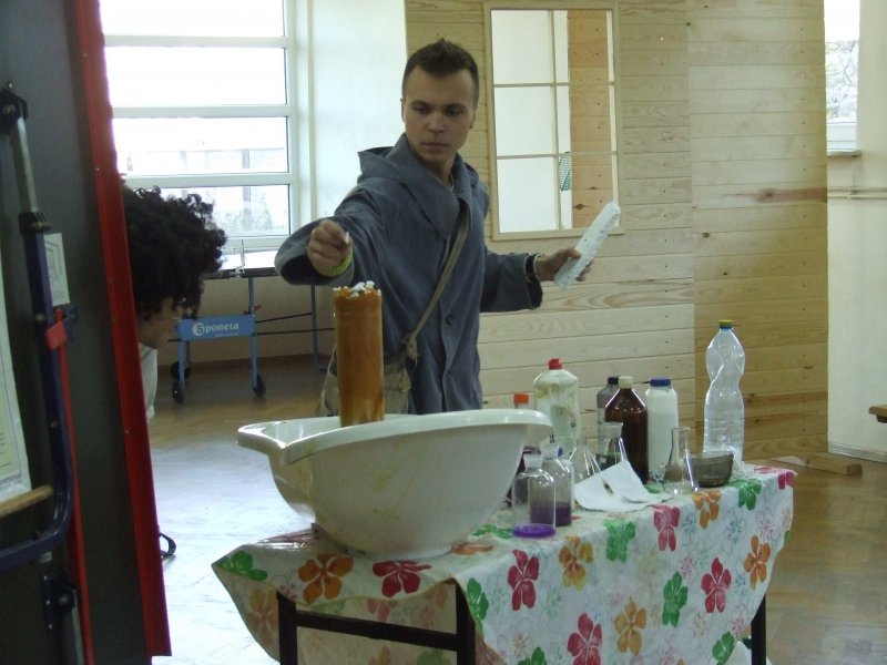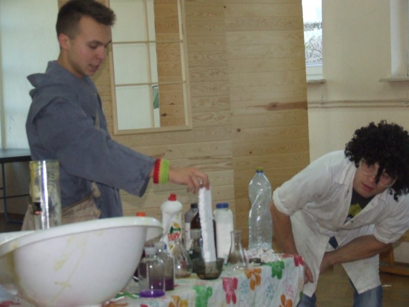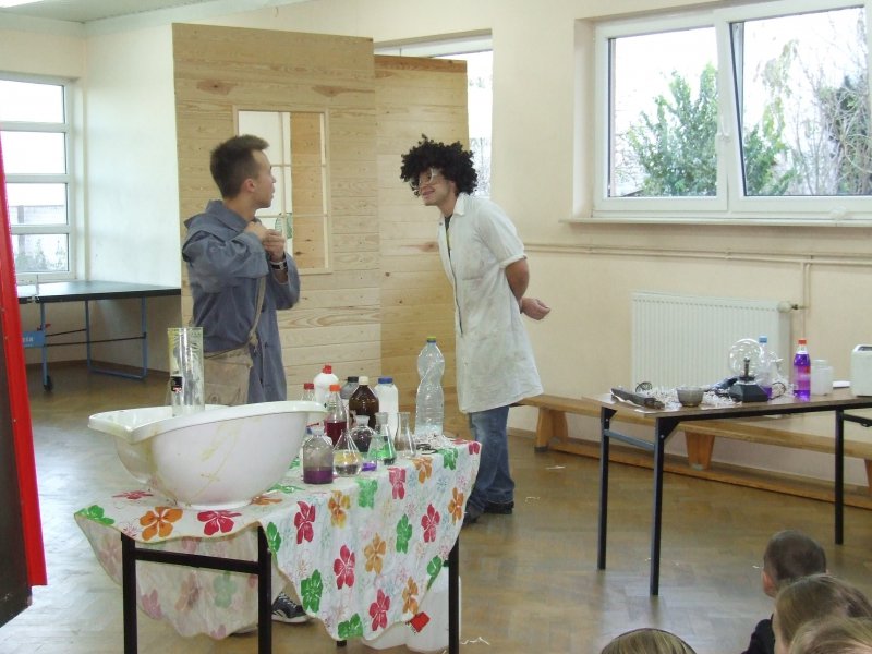 24 września naszą szkołę odwiedziła grupa „Zelektryzowani”. Stanowią ją dwaj panowie: Krzychu- podróżnik i Albercik-nieco ekscentryczny i lekko oszalały alchemik naukowiec. Celem ich wystąpienia było przekazanie uczniom wiedzy, którą zebrali podczas wielu wypraw w najdalsze zakątki świata. Naukowcy pokazywali różnorodne doświadczenia, które wprawiały w zachwyt i osłupienie. Widownia miała okazję sprawdzić na jakiej zasadzie działa kompas, jak czytać mapę, utrwalali kierunki geograficzne, sprawdzali jak działa pole elektrostatyczne i magnetyczne. Szaleni badacze próbowali również zbudować perpetuum mobile oraz mini silnik odrzutowy przy pomocy przedmiotów codziennego użytku, stworzyć zegar jodowy, wyhodowali zwierzątko dla Albercika i wiele, wiele innych. Uczniowie byli zaangażowani, bardzo chętnie uczestniczyli w pokazach, wielu z nich na pewno miało ochotę zamienić się miejscami z naukowcami. Zajęcia –lekko humorystyczne aczkolwiek bardzo pouczające sprawiły ,że uczniowie z pewnością zechcą pogłębić tajniki wiedzy fizyki i chemii. Takie „żywe lekcje przyrody”, w ściśle kontrolowanych warunkach ,stanowią fantastyczny element wzbogacający zajęcia dydaktyczne.