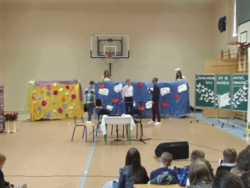 W dalszej części uroczystości uczniowie klas VIII i VII podziękowały za trud wkładany w nasze wychowanie i edukację i zaprezentowały żartobliwe, krótkie sceny z „Zemsty” Aleksandra Fredry oraz z „Romeo i Julii” Williama Shakespeare’a. Pod koniec akademii uczniowie wręczyli wszystkim nauczycielom oraz pracownikom szkoły kwiaty składając najserdeczniejsze życzenia.