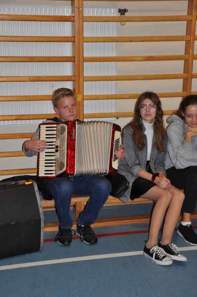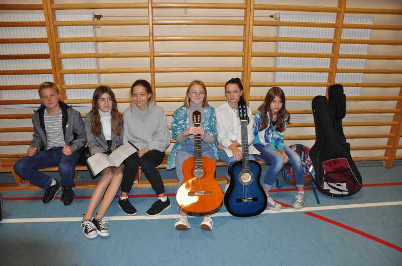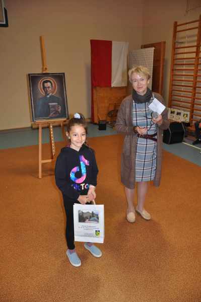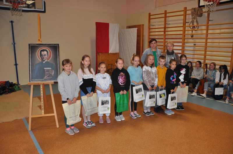 Spotkanie uświetnił zespół muzyczny w składzie: Anna Gałązka, Maja Popławska, Oliwia Wieliczko, Kinga Koroś, Natalia Rolek, Mateusz Styś wraz z opiekunem Sławomirem Akonom. Występy zespołu były przeplatane pogawędką na temat Błogosławionego, poprowadzoną przez p. Sławka. Dzieci aktywnie włączały się do prelekcji, udzielając odpowiedzi na pytania związane z Patronem, a za prawidłowe odpowiedzi losowały drobne upominki.