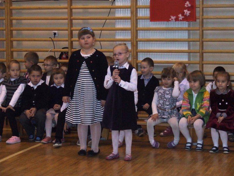 W uroczystości uczestniczyły dzieci z klasy 0A i 0B, ich rodzice i wychowawcy. Pani dyrektor powitała wszystkich zebranych. Potem odbyła się część artystyczna. W czasie występów dzieci zaprezentowały swoje umiejętności. Najważniejszym punktem programu było pasowanie na starszaków przez Panią Dyrektor. Na koniec dzieci otrzymały pamiątkowe dyplomy oraz upominki od rodziców.