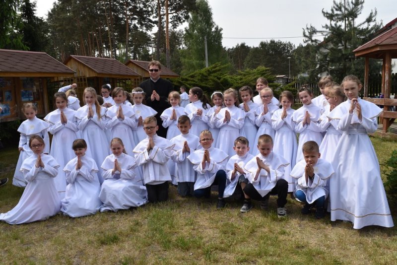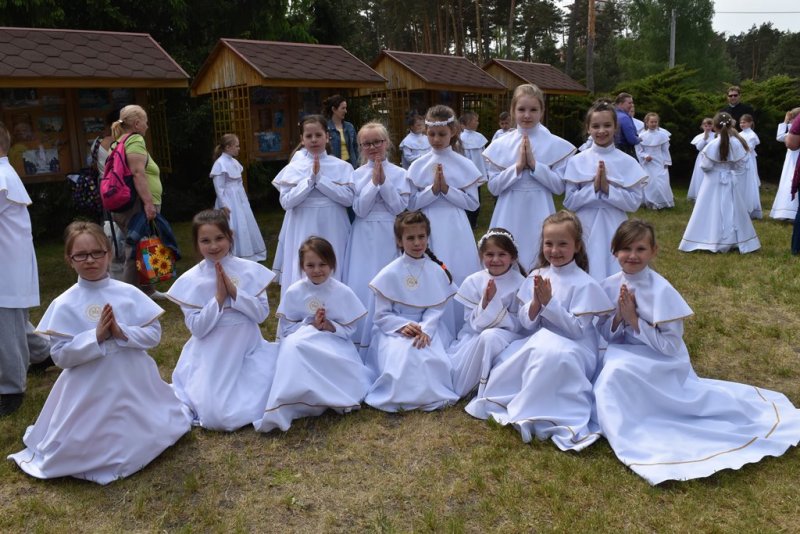 24 maja 2017r. dzieci z parafii Sadowne, które w sobotę po raz pierwszy uroczyście przyjęły Komunię Świętą udały się na pielgrzymkę autokarową do Loretto. Dzieciom towarzyszyli rodzice, wychowawcy, katechetki i ks. Daniel Obzejta, który w tym roku przygotowywał dzieci do I Komunii Świętej. Ponieważ dzieci obchodzą teraz Biały Tydzień, do Loretto zabrały ze sobą stroje liturgiczne i w nich wzięły udział we Mszy Świętej. Po duchowej uczcie było też coś dla ciała – ognisko z pieczeniem kiełbasek. Następnie udaliśmy się na Leśną Drogę Krzyżową, którą poprowadził ks. Daniel. Po tym nabożeństwie dzieci miały czas wolny na zakup pamiątek religijnych, zabawę i śpiew piosenek religijnych, który przygrywając na gitarze prowadził nasz ksiądz wikariusz. Trochę dokuczały nam komary, ale za to dopisała pogoda i dzieci zadowolone wróciły bezpiecznie do domów.