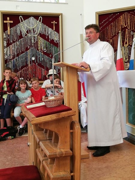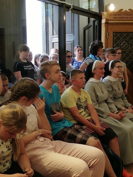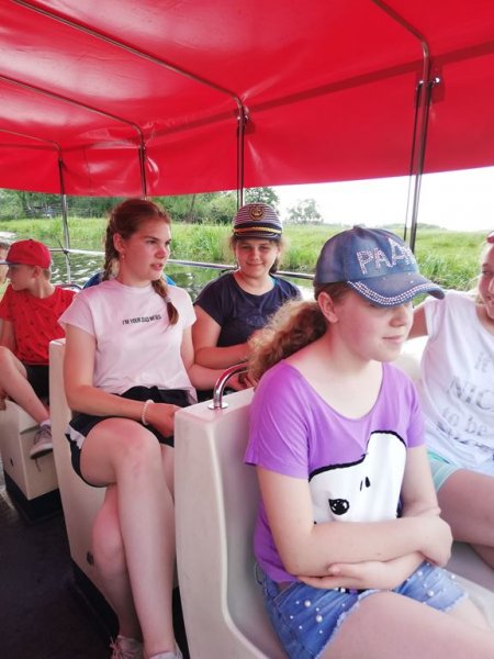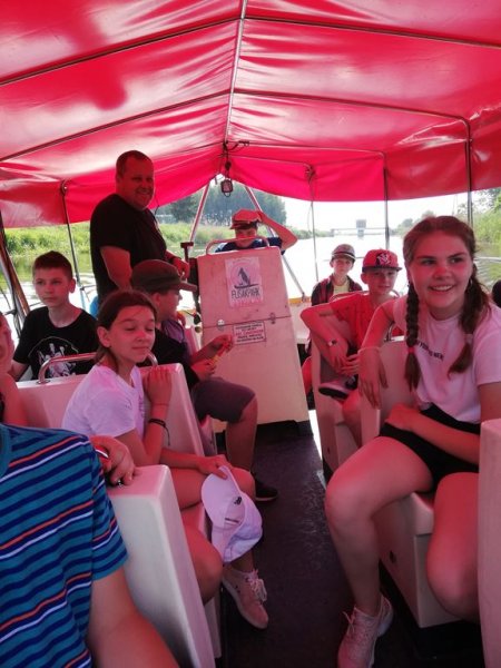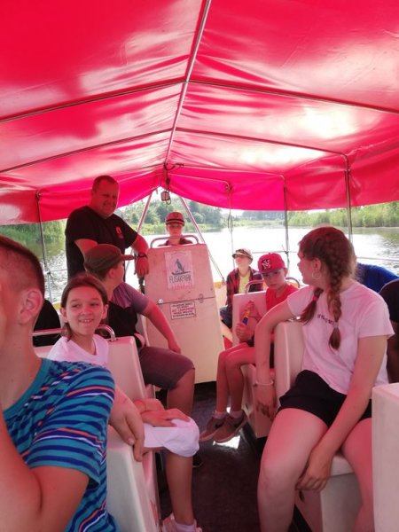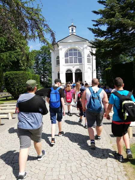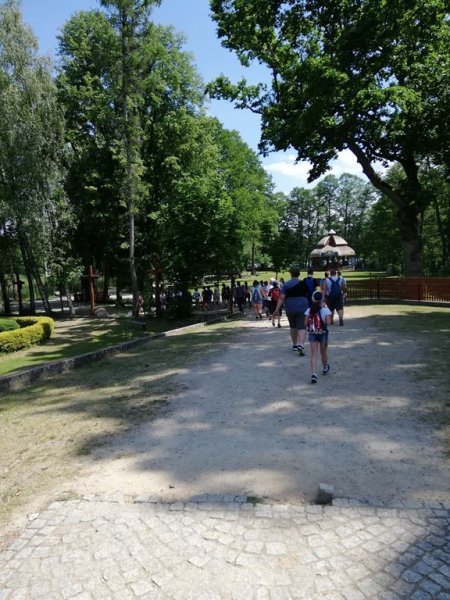 11 czerwca 2019r. 23 – osobowa grupa kolędników misyjnych ze Szkoły Podstawowej w Sadownem razem z uczniami ze SP w Grabinach i Kołodziążu udała się na jednodniową autokarową pielgrzymkę. Najpierw było coś dla ducha, ponieważ nawiedziliśmy Sanktuarium Matki Bożej Studzieniczańskiej. Dokładnie 20 lat temu w tym miejscu modlił się szczególny pielgrzym – Papież Jan Paweł II. Wydarzenie to upamiętnia pomnik papieża ustawiony na brzegu, na styku jeziora i wyspy. W Kaplicy Matki Bożej w intencji naszych kolędników została odprawiona Msza Święta. Umocnieni duchowo udaliśmy się do Tykocina. Kilka godzin spędziliśmy w Flisak Park, rodzinnym ogrodzie rozrywki i edukacji zbudowanym przez pasjonatów tykocińskiej historii i narwiańskiej przyrody. Park ten podzielony jest na trzy części: część przyrodniczą z figurami gigantycznych owadów, część historyczną z Muzeum Narwi i rekonstrukcją dawnych urządzeń portowych i część przeznaczoną do wypoczynku, gdzie odbyliśmy relaksującą podróż tramwajem wodnym po Narwi. Ostatnim punktem wyjazdu był Mc Donald’s w Łomży. Do domów wróciliśmy bardzo zadowoleni śpiewając piosenki religijne i ludowe. Pogoda dopisała, humory też, a więc pielgrzymkę uznajemy za udaną.