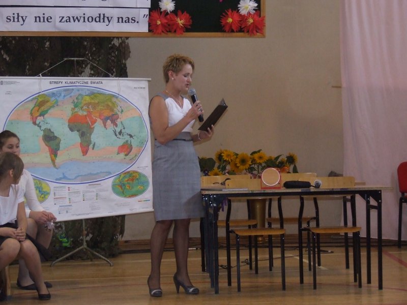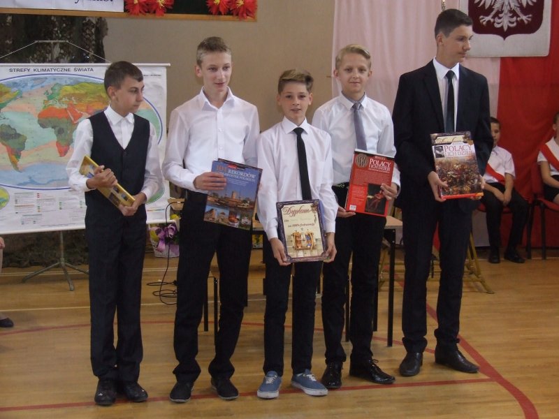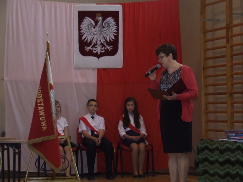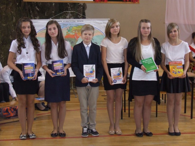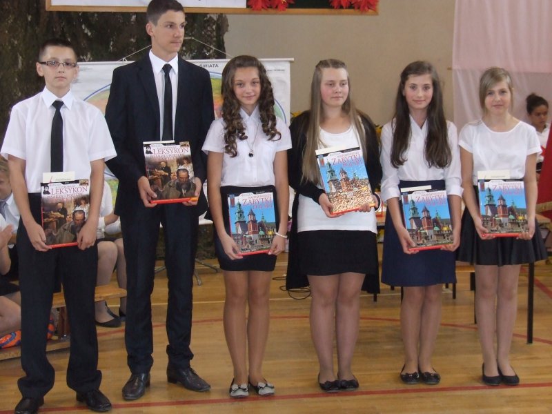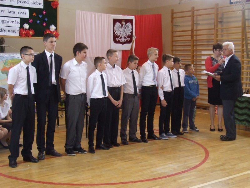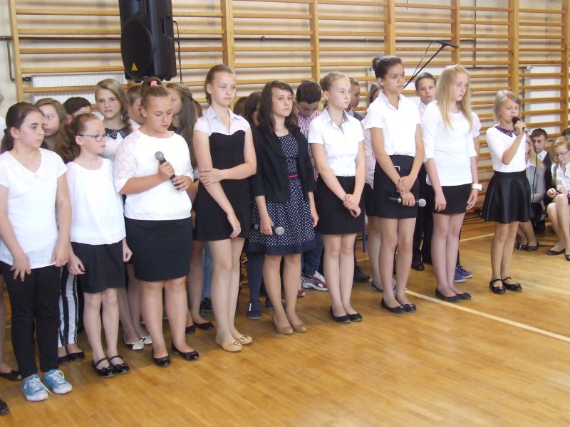 W części oficjalnej pani dyrektor szkoły z wychowawcami i zaproszonymi gośćmi wręczyła nagrody za wysokie wyniki w nauce, sukcesy w sporcie, działalność na rzecz szkoły i środowiska oraz listy gratulacyjne rodzicom tychże uczniów.