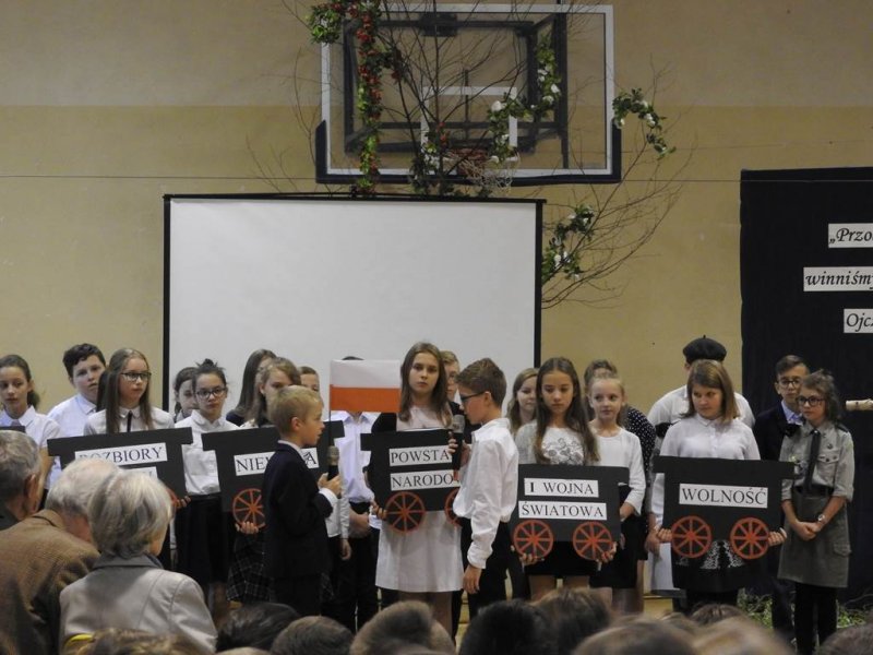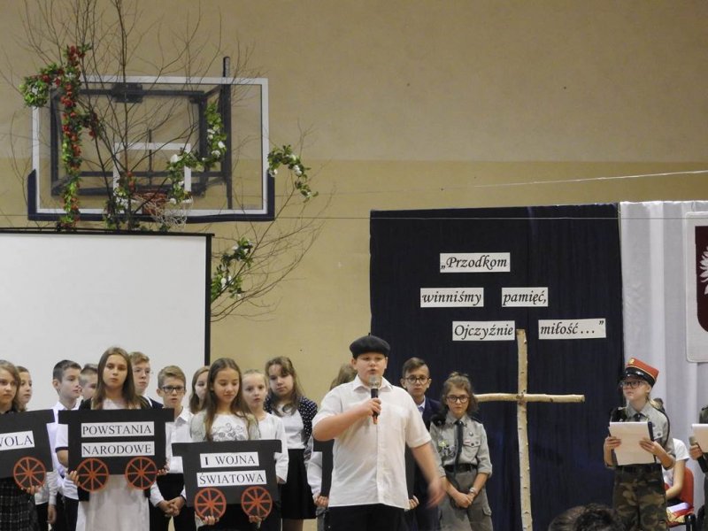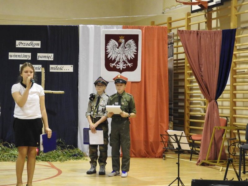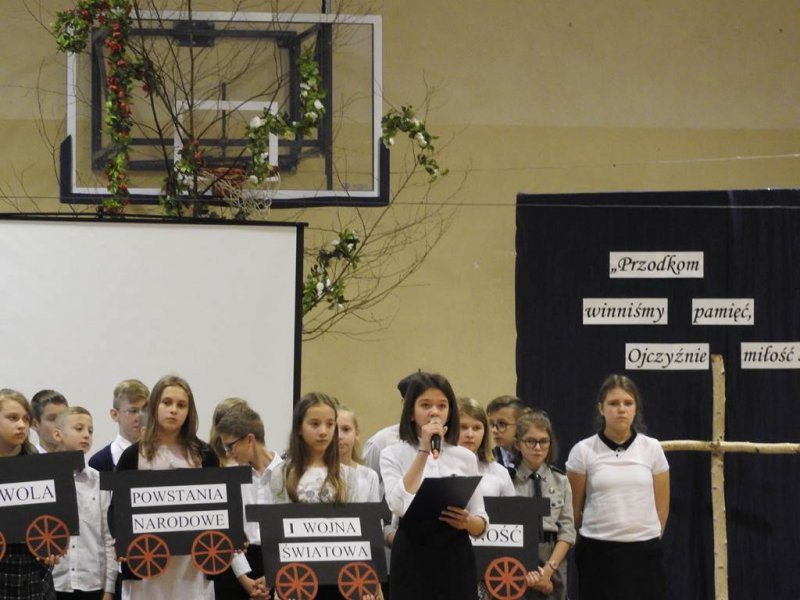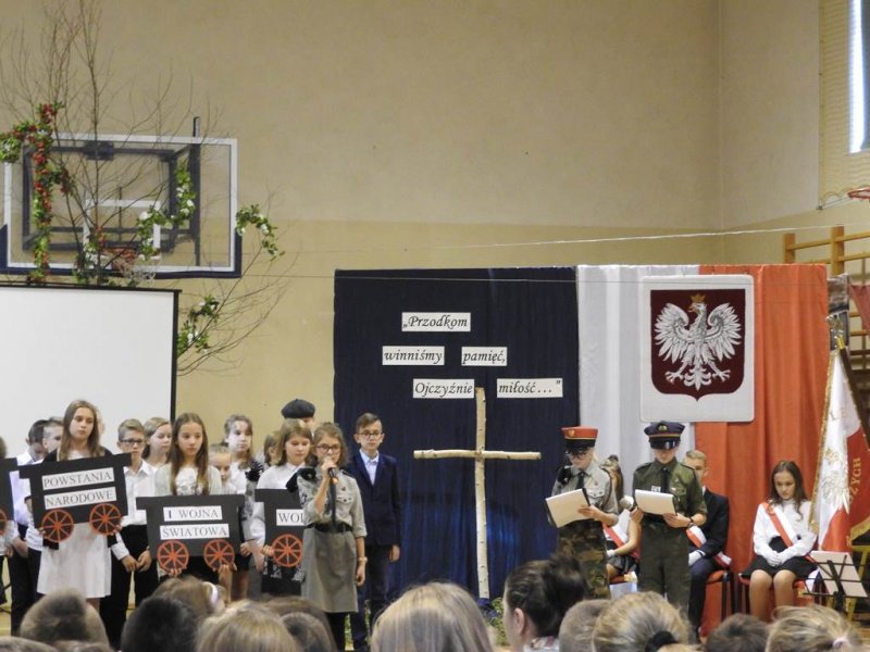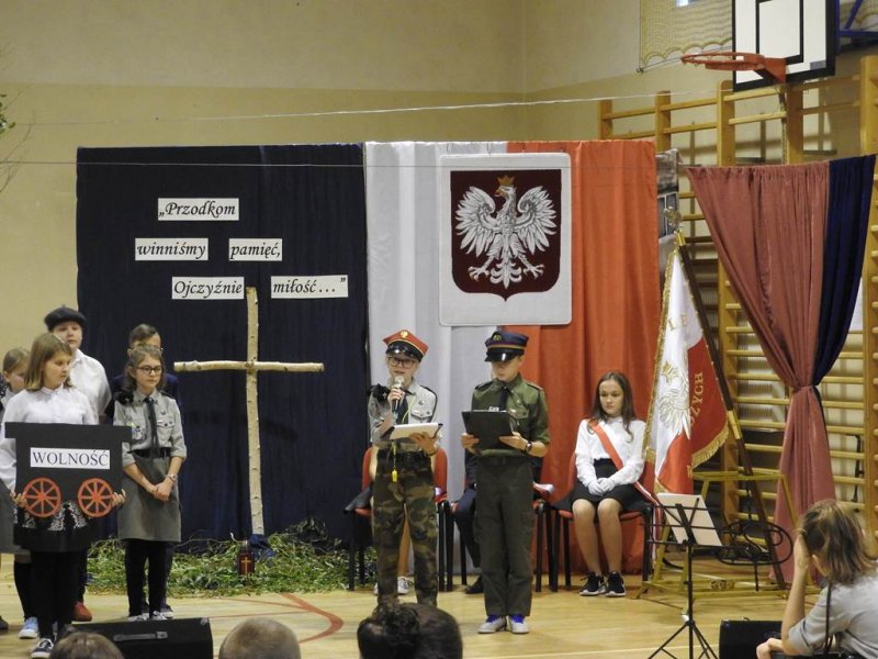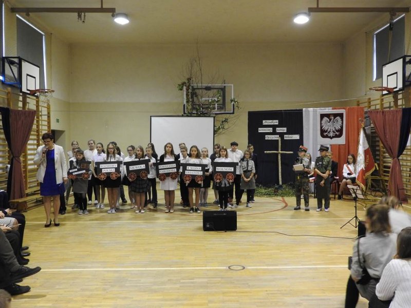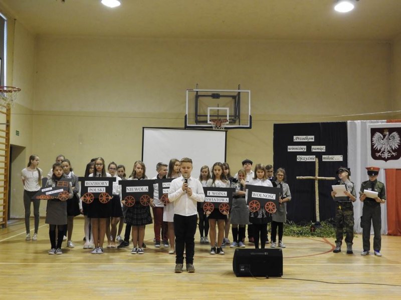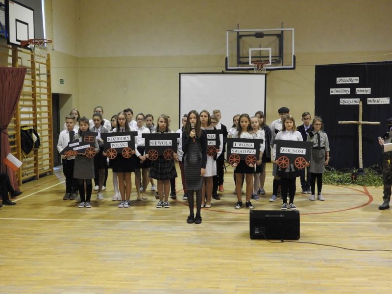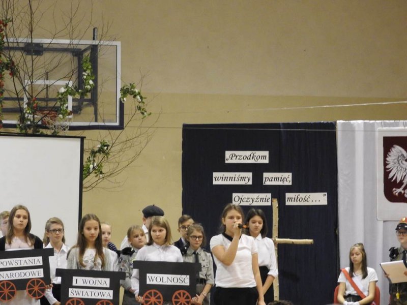 Uroczystość rozpoczęła się wprowadzeniem sztandaru szkoły oraz wspólnym odśpiewaniem hymnu narodowego. Następnie głos zabrała dyrektor szkoły, pani Małgorzata Koroś, która powitała zaproszonych gości, uczniów, nauczycieli oraz wprowadziła wszystkich w atmosferę tego patriotycznego święta.