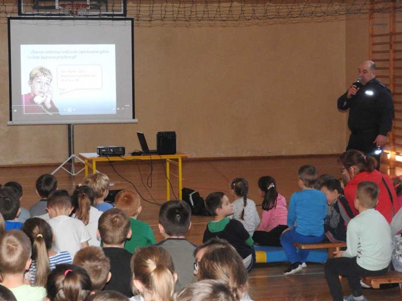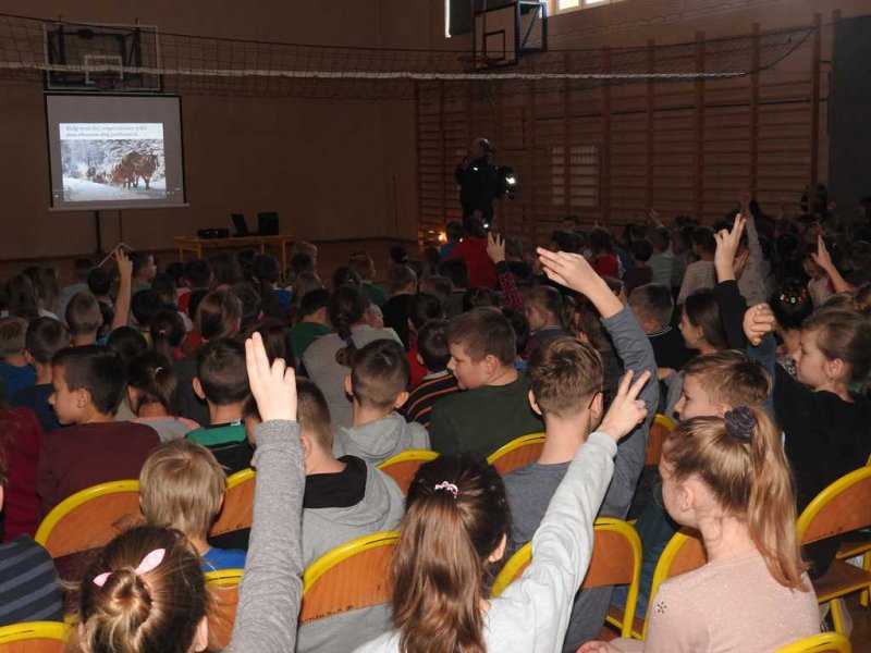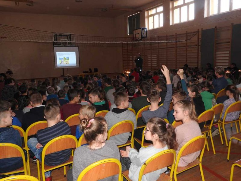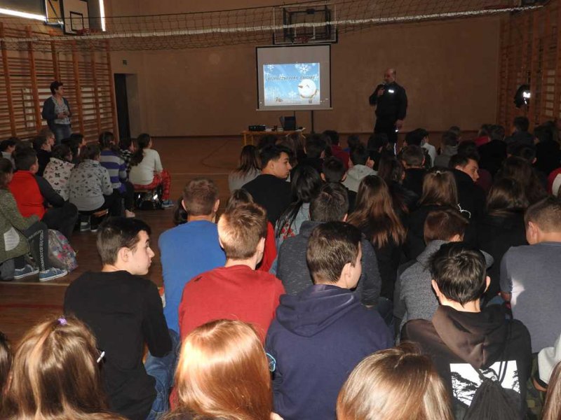 Podczas prelekcji uczniowie zostali poinformowani jakie niebezpieczeństwa niosą ze sobą zabawy na powietrzu w okresie zimowym (odmrożenie, wychłodzenie, zabawy na śniegu w pobliżu dróg oraz przy zbiornikach wodnych). Dzieci i młodzież z naszej szkoły została poinstruowana jak udzielać pomocy osobie, która uległa wypadkowi na skutek załamania się powierzchni lodu. Omówione zostały zasady zachowania się w przypadku kontaktu z osobami obcymi. Poruszono również tematy bezpieczeństwa w sieci oraz zjawiska przemocy. Z dużym zainteresowaniem młodzież obejrzała ciekawe, tematyczne filmy.