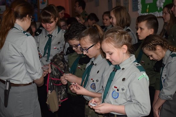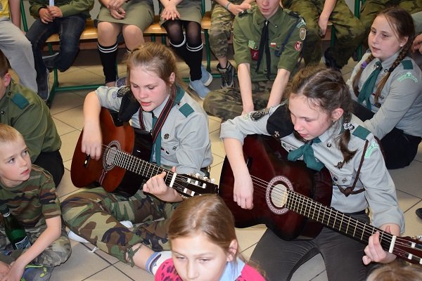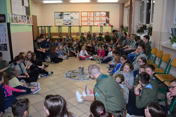 Kulminacyjnym punktem biwakowego programu było sobotnie, wieczorne świecowisko , które przyniosło niespodziankę siedmiorgu naszym druhnom i druhom: Marcie Szymanik, Oliwii Felińskiej, Natalii Decyk, Bartkowi Cyranowi, Kacprowi Kądzieli, Bartkowi Jaruchowskiemu, Maćkowi Szcześnikowi, którzy w obecności zgromadzonych harcerzy oraz gości złożyli swoje przyrzeczenie harcerskie i otrzymali harcerski krzyż. Spośród naszych harcerzy wyróżnić należy również Michalinę Zakrzewską i Olę Ziółkowską, które zadbały o oprawę muzyczną świecowiska, akompaniując na gitarach. Dalsza część wieczoru upłynęła na prezentacjach przedbiwakowego zadania, czyli filmów – wywiadów na temat Świat Wielkanocnych. I tu słowa uznania druhów: dla Bartka Cyrana, Oliwii Felińskiej, Marty Szymanik i Maćka Szcześnika, którzy byli autorami filmu prezentowanego przez naszą drużynę.