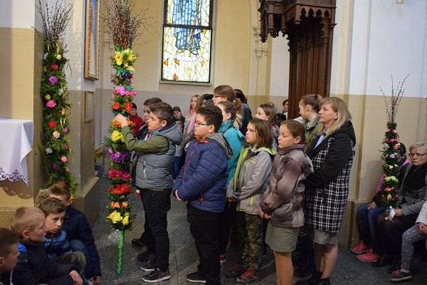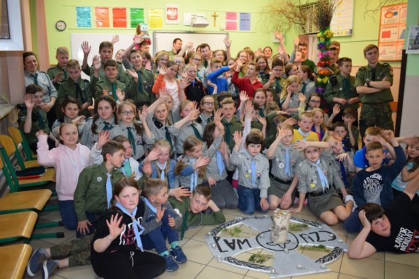 W niedzielny poranek, po śniadaniu udaliśmy się, wraz z przygotowaną dzień wcześniej palmą, na Mszę Świętą w miejscowym kościele. Po Mszy wróciliśmy do szkoły na „końcowe odliczanie” – apel, w trakcie którego podsumowano trzydniowy biwak, wręczono nagrody za biwakową rywalizację oraz zasłużone podziękowania.