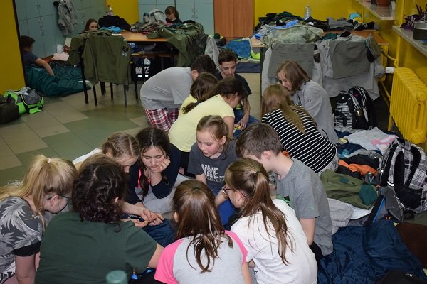 Biwak rozpoczął się od piątkowego wieczoru (a ściślej nocy), bo tuż po ciszy nocnej zadzwonił alarm na nocną grę terenową „W poszukiwaniu skarbu”. Gra ciekawa, śmieszna ale i nieco trudna , bo po nieznanym terenie, w nowym środowisku i w dodatku w ciemnościach z mnóstwem pułapek i niespodzianek. Ale czas na poszukiwania, został wykorzystany efektywnie i tuż przed północą wszystkie drużyny wróciły z trofeami.