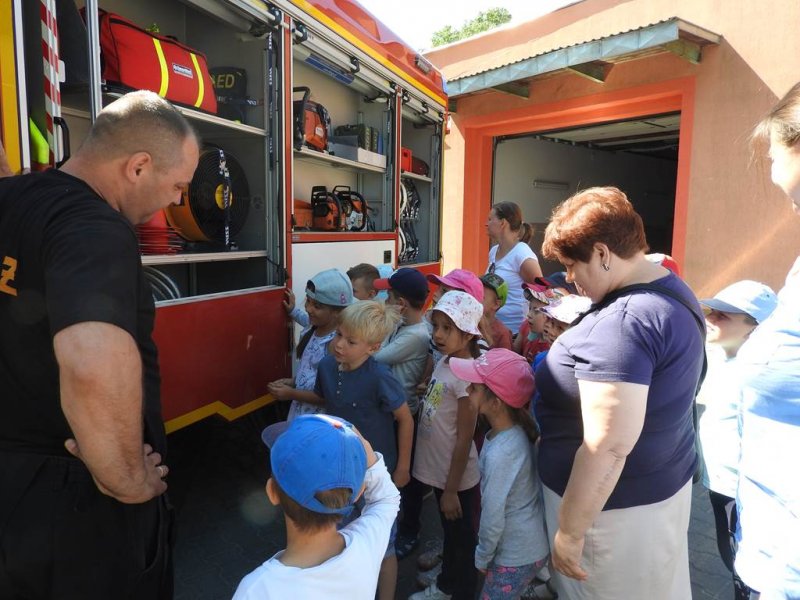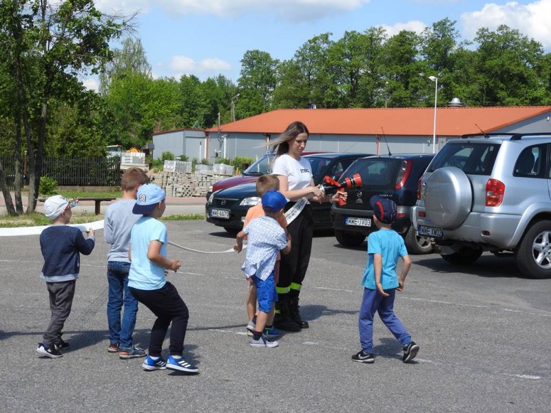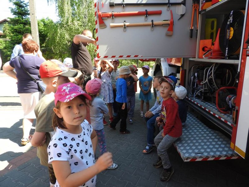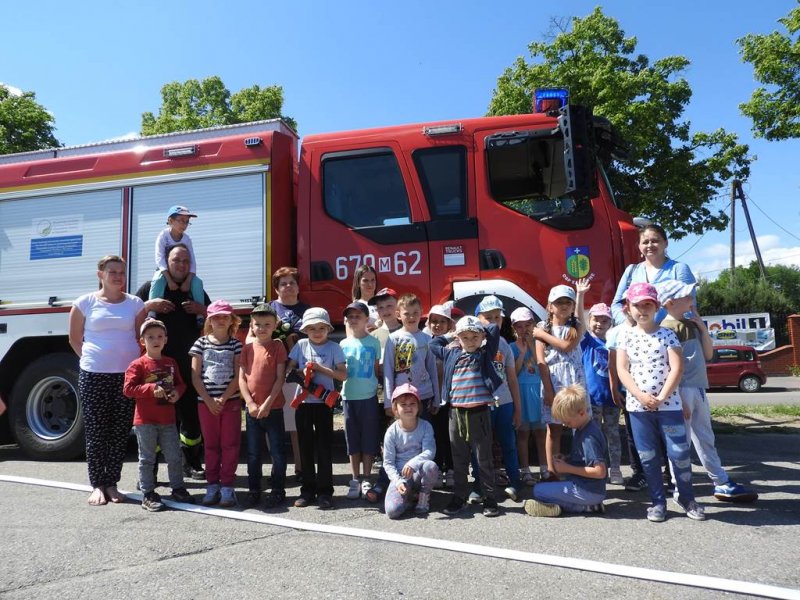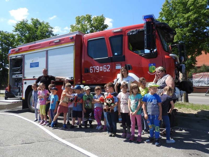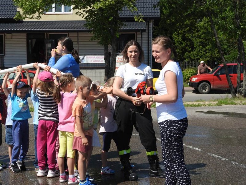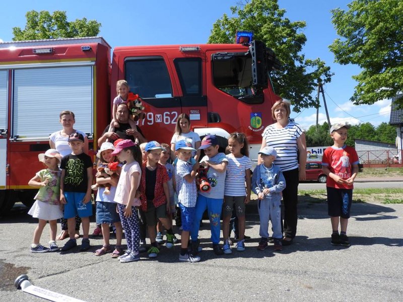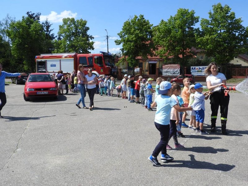 24 maja dzieci ze szkolnej zerówki były gośćmi strażaków z OSP Sadowne. Druhna Karolina Kujawa i druh Adam Szymanik demonstrowali sprzęt gaśniczo – ratunkowy, szoferki samochodów strażackich , odzież ochronną i hełmy. Największą furorę zrobił pokaz puszczania wody z węża strażackiego. Nie był on długi, gdyż dzieci spontanicznie przemieszczały się w kierunku, gdzie lała się woda. Ale w tak słoneczny dzień była to sama przyjemność – nikt nie zachorował!
