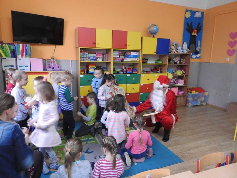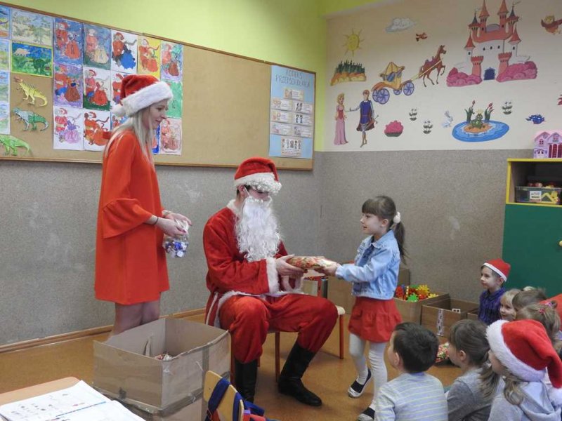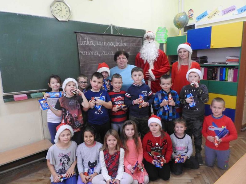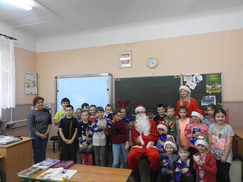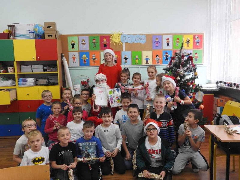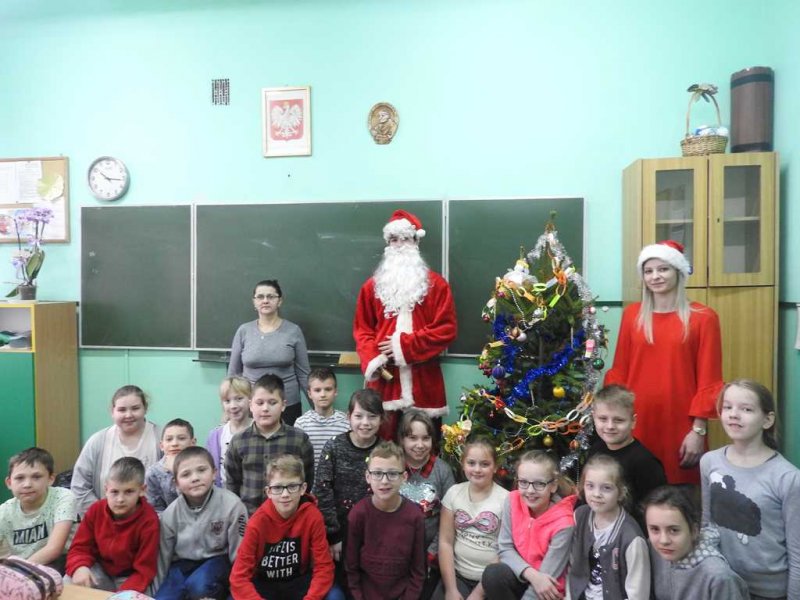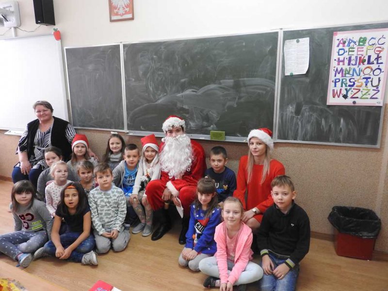 Podczas spotkania, dzieci z oddziałów przedszkolnych oraz uczniowie kl. I – III śpiewali Mikołajowi piosenki i recytowali tematyczne wiersze, za co Mikołaj obdarowywał je prezentami. Poczciwy staruszek nie zapomniał również o młodzieży z klas IV – VIII. Także i dla nich znalazły się słodkie niespodzianki. Dzięki wizycie niespodziewanego gościa Mikołajkowy Dzień upłynął w naszej placówce w miłym, świątecznym nastroju.
