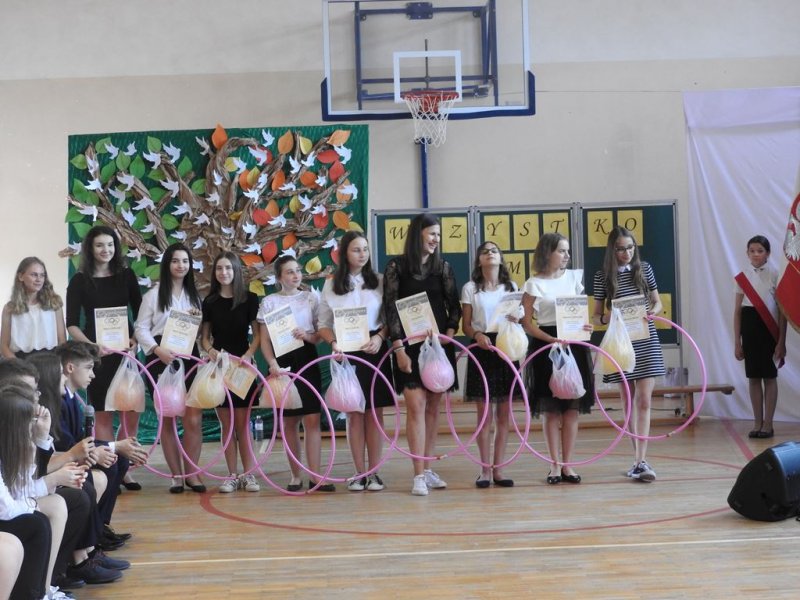Uczennicom z najwyższymi średnimi ocen (świadectwa z wyróżnieniem)- Michalinie Zakrzewskiej (VIIIa) i Marcie Ogonowskiej (VIIIb) wręczone zostały nagrody książkowe. Nagrody i dyplomy otrzymali też uczniowie, który w różny sposób zaangażowani byli w życie szkoły oraz ci, którzy w minionym roku szkolnym uzyskali 100% frekwencję.
