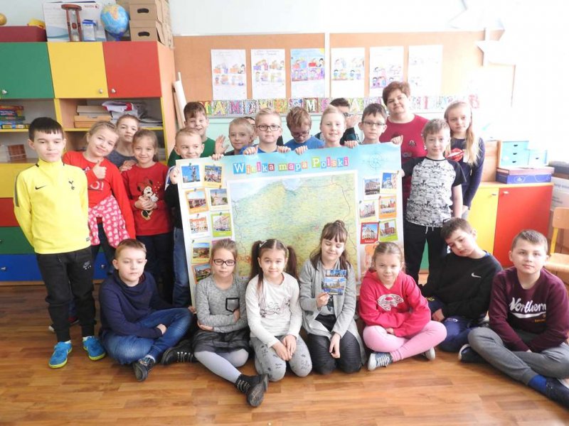 Uczniowie klasy II b biorą udział w ogólnopolskiej akcji „Wielka mapa Polski”, zorganizowanej przez Wydawnictwo Szkolne i Pedagogiczne. Akcja ma na celu wymianę pocztówkową między szkołami z różnych regionów Polski.