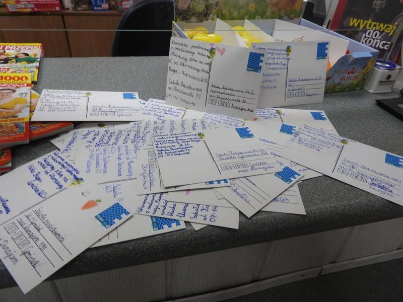 Z Sadownego uczniowie wysłali już 30 pocztówek z wiosennymi pozdrowieniami do szkół. Udali się w tym celu Jna Pocztę, czuli się bezpiecznie dzięki otrzymanym kamizelkom w ramach kampanii społecznej „Dobrze cię widzieć”.
